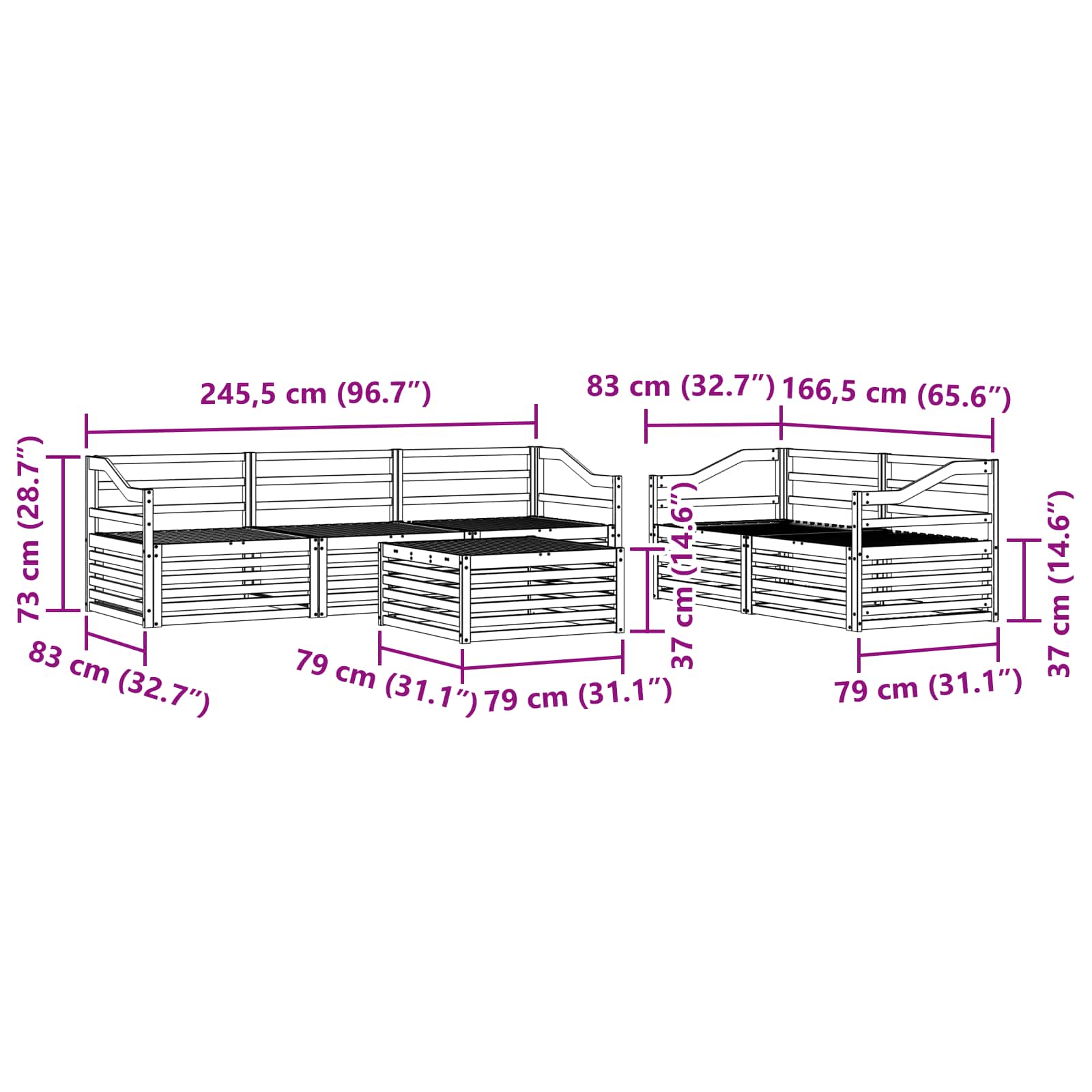 - Gesamtabmessungen: 79 x 79 x 37 cm (L x B x H)