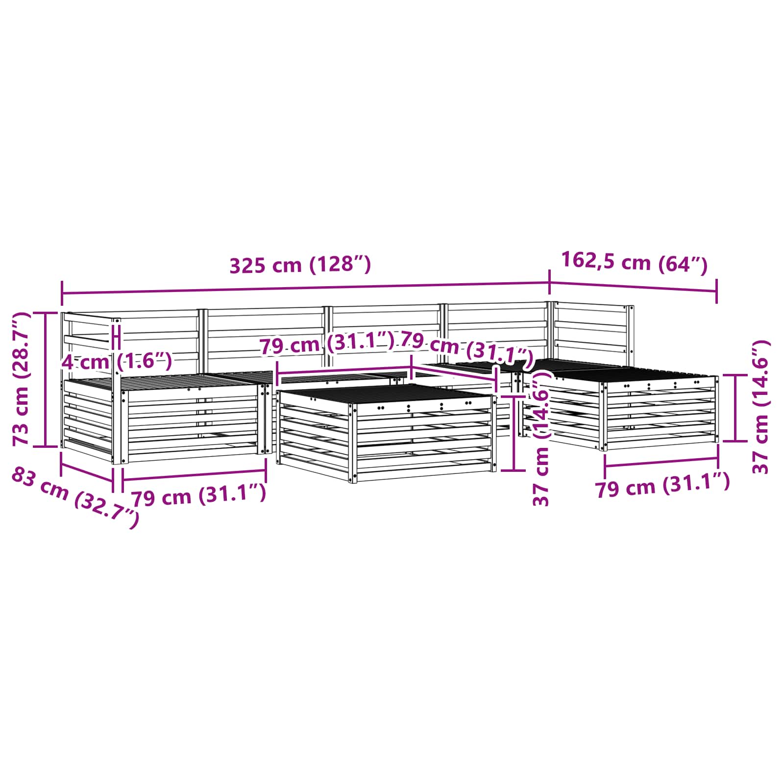 - Gesamtabmessungen: 79 x 79 x 37 cm (L x B x H)