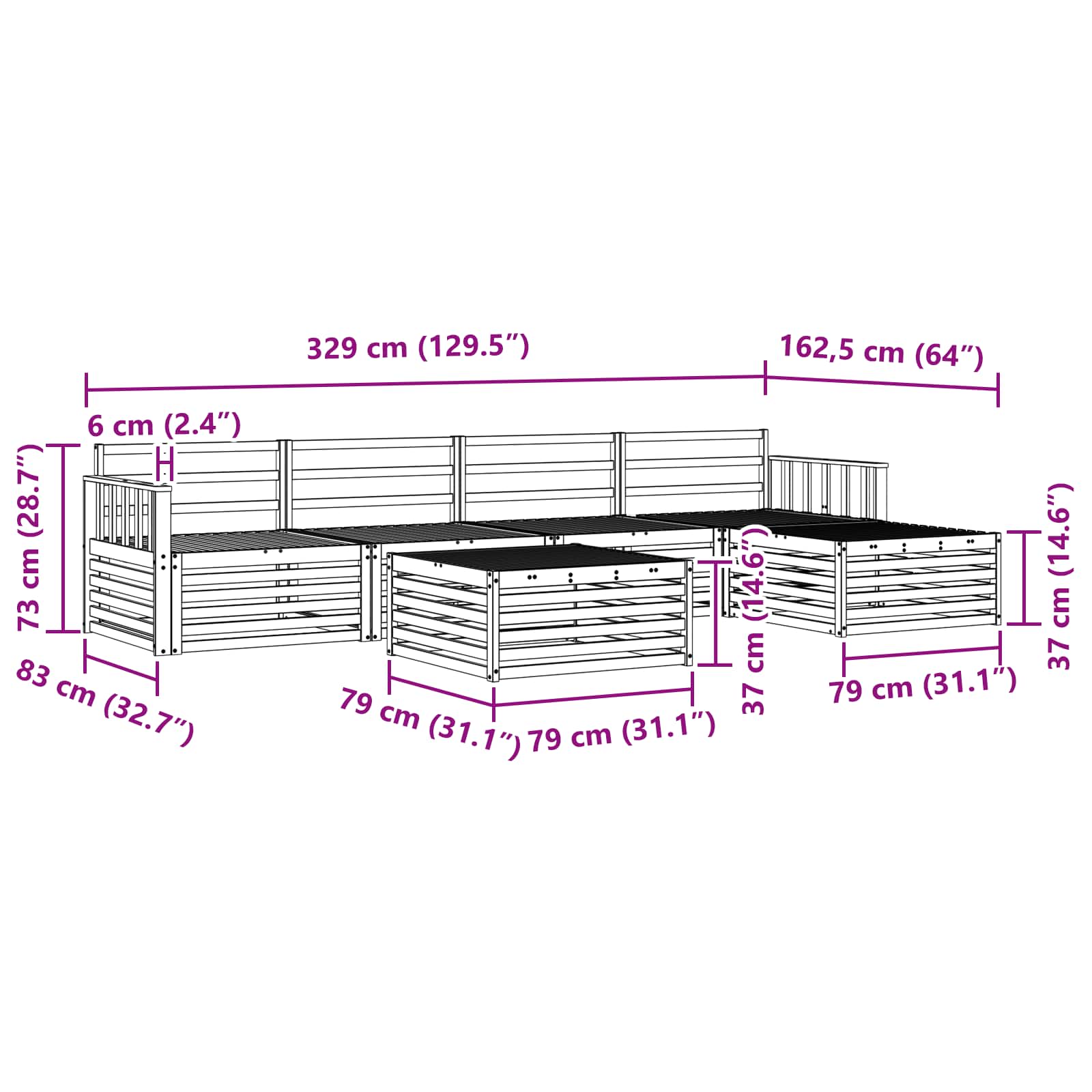 - Gesamtabmessungen: 79 x 79 x 37 cm (L x B x H)