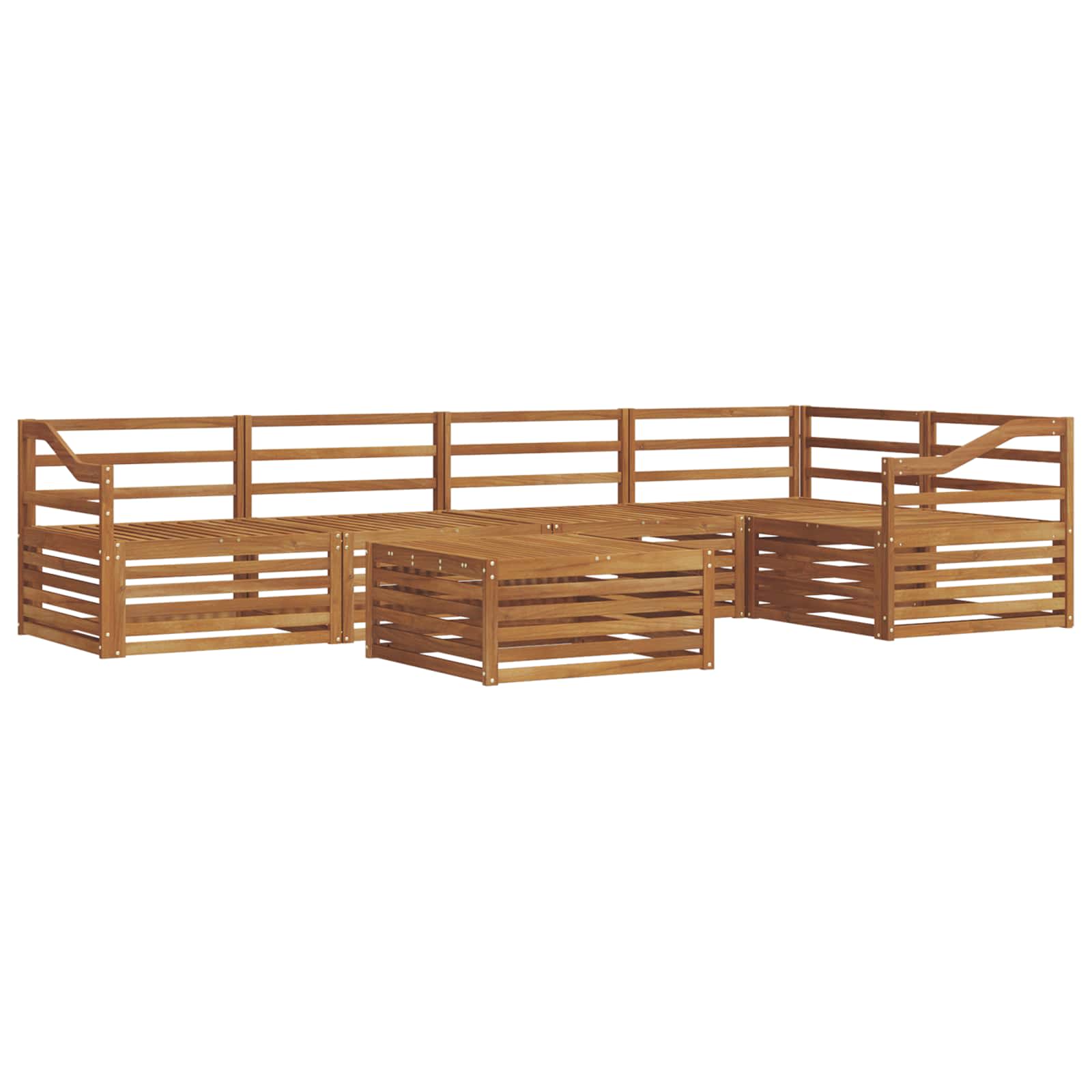 Dieses Outdoor-Möbelset vereint Stil und Funktionalität und wird zum Blickfang für jeden Garten oder Terrasse. Das moderne Design mit klaren Linien und minimalistischen Details gibt dem Ganzen einen eleganten Touch und sorgt gleichzeitig für Entspannung und gemütliche Zusammenkünfte im Freien. Hergestellt aus massivem Akazienholz, garantiert das Set Robustheit und anhaltende Schönheit, perfekt für alle, die praktische und stilvolle Möbel für draußen suchen. Langlebiges massives Akazienholz: Hergestellt aus massivem Akazienholz, ist dieses Set bekannt für seine Haltbarkeit und Widerstandsfähigkeit gegen Wetter. Die robuste Bauweise sorgt für zuverlässigen Halt und lange Stabilität und die warme, natürliche Farbe wertet jeden Garten oder Terrasse auf. Wetterbeständiges Design: Mit einer beschichteten Oberfläche bietet dieses Möbelset guten Schutz gegen Sonne, leichten Regen und andere äußere Einflüsse. Das polierte Finish bewahrt sowohl Aussehen als auch Funktionalität und sorgt für lange Haltbarkeit in deinem Garten, auf der Terrasse oder im Hinterhof. Komponenten & Design: Jedes Teil, von den Armlehnen bis zu den Rückenlehnen, wird für Stil und Funktionalität entworfen. Unterstützende Eigenschaften sorgen für mehr Komfort und das zusammenhängende Design schafft ein ansprechendes Gesamtbild für verschiedene Outdoor-Events. Komfort & Vielseitigkeit: Das modulare Design ermöglicht flexible Anordnungen, die sich an verschiedene Räume und Bedürfnisse anpassen. Perfekt zum Entspannen, für Feiern oder ruhige Lesestunden, passt sich dieses Set mühelos deiner Außenumgebung an und maximiert den Komfort und die Möglichkeiten. Einfache Pflege & Wartung: Halte deine Möbel in einem guten Zustand, indem du die Oberfläche mit einem feuchten Tuch reinigst und scharfe Reiniger vermeidest. Regelmäßige Pflege hilft, das Aussehen zu bewahren und die Lebensdauer der Möbel zu verlängern.