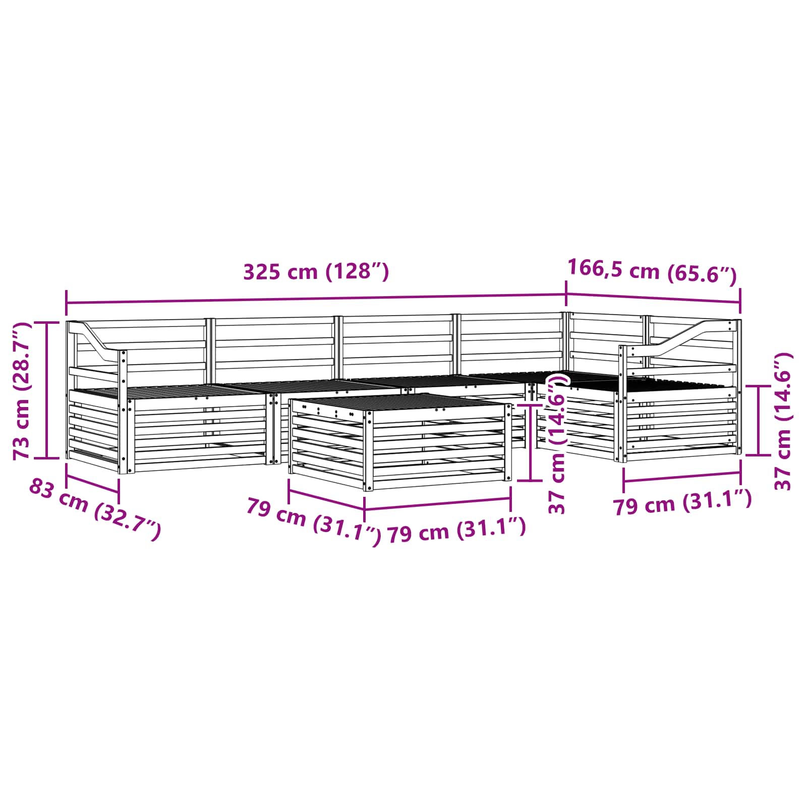 - Gesamtabmessungen: 79 x 79 x 37 cm (L x B x H)