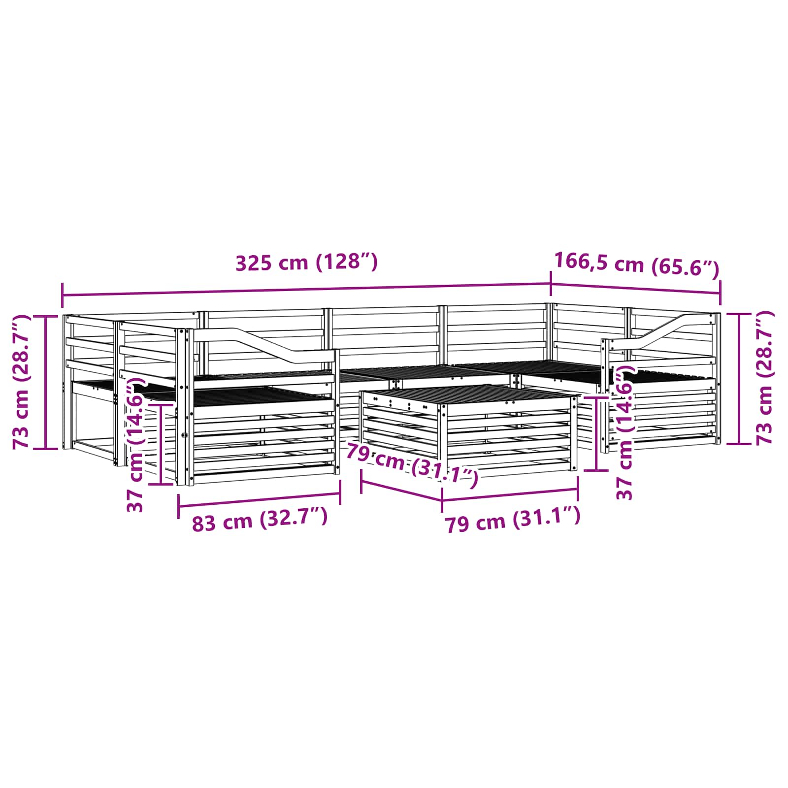 - Gesamtabmessungen: 79 x 79 x 37 cm (L x B x H)
