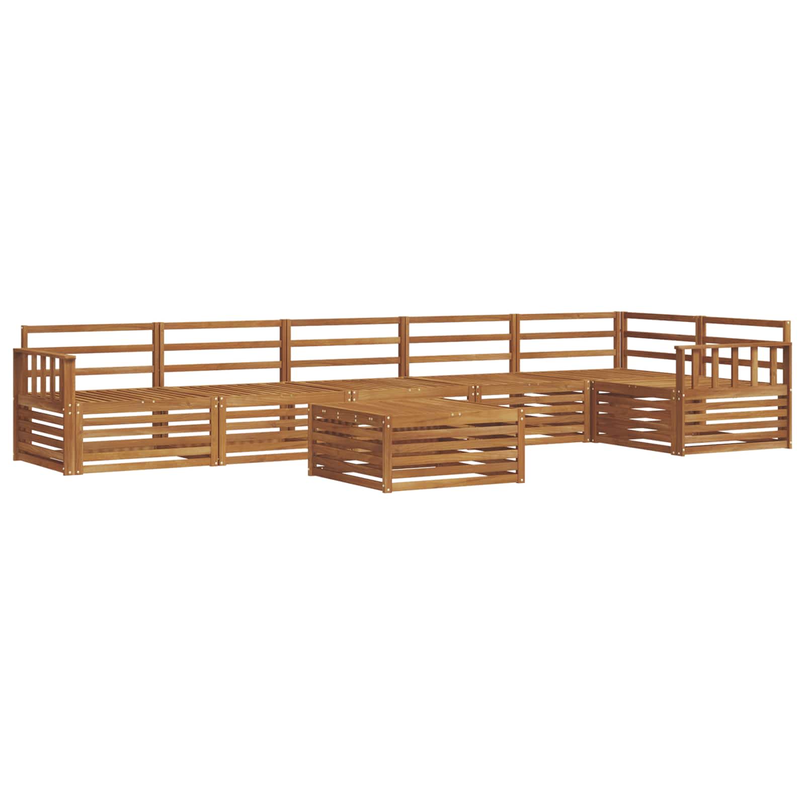Das Outdoor-Möbelset bringt Stil und Funktionalität zusammen und wird zum beeindruckenden Mittelpunkt für jeden Garten oder jede Terrasse. Das moderne Design mit klaren Linien und minimalen Details sorgt für Eleganz, während es gleichzeitig die Entspannung und das Zusammensein im Freien fördert. Das Set aus solidem Akazienholz garantiert Langlebigkeit und anhaltende visuelle Anziehungskraft und ist perfekt für alle, die praktische und schicke Designs für ihre Outdoor-Möbel suchen. Langlebiges massives Akazienholz: Dieses Outdoor-Möbelset ist aus solidem Akazienholz gefertigt und bekannt für seine Langlebigkeit sowie Widerstandsfähigkeit gegen äußere Bedingungen. Die robuste Bauweise sorgt für Haltbarkeit und Stabilität, während die warme Holzfarbe jeden Garten oder Terrasse aufhellt. Wetterbeständiges Design: Die lackierte Oberfläche schützt gegen Sonne, leichten Regen und andere Umwelteinflüsse. Das polierte Finish hilft, sowohl das Aussehen als auch die Funktionalität zu erhalten, sodass du eine lange Haltbarkeit für deinen Garten, deine Terrasse oder deinen Balkon genießen kannst. Komponenten & Design: Jedes Stück, vom Armrest über Rückenlehnen, hat sowohl Stil als auch Funktion, mit Extras, die zusätzlichen Komfort bieten. Das einheitliche Design sorgt dafür, dass alles gut zusammenpasst und für verschiedene Anlässe im Freien harmonisch aussieht. Komfort & Vielseitigkeit: Das modulare Design bietet flexible Anordnungsmöglichkeiten, die an unterschiedliche Räume und Bedürfnisse anpassbar sind. Ideal zum Entspannen, für Treffen mit Freunden oder ruhige Lesemomente, fügt sich dieses Set mühelos in jede Außenumgebung ein und maximiert Komfort und Funktionalität. Einfache Pflege & Wartung: Halte die Möbel in gutem Zustand, indem du die Oberfläche mit einem feuchten Tuch abwischst und scharfe Reinigungsmittel vermeidest. Regelmäßige Pflege hilft, das Aussehen der Möbel zu bewahren und ihre Lebensdauer zu verlängern.