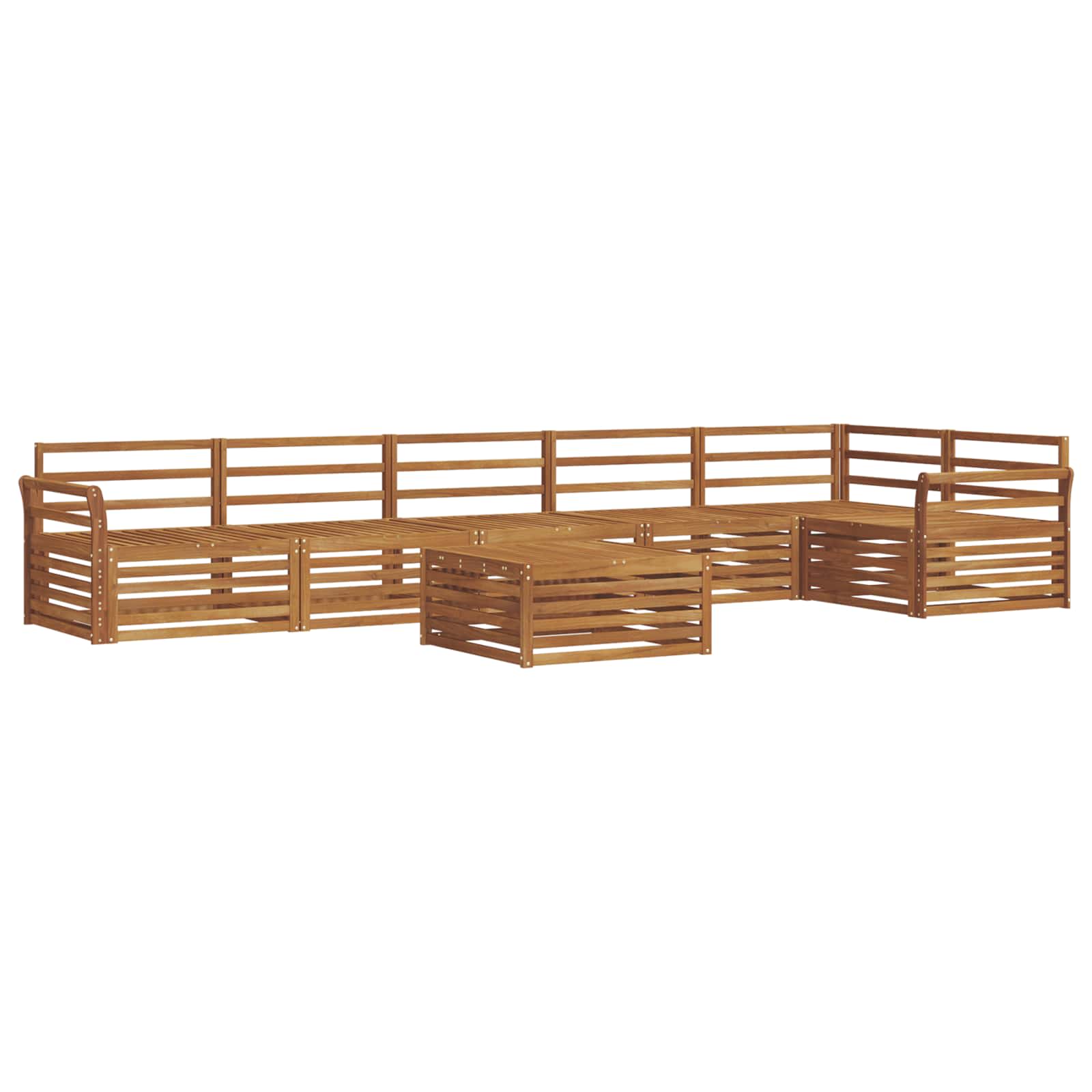 Das Outdoor-Möbelset bringt Stil und Funktionalität zusammen und wird zum beeindruckenden Mittelpunkt für jeden Garten oder jede Terrasse. Das moderne Design mit klaren Linien und minimalen Details sorgt für Eleganz, während es gleichzeitig die Entspannung und das Zusammensein im Freien fördert. Das Set aus solidem Akazienholz garantiert Langlebigkeit und anhaltende visuelle Anziehungskraft und ist perfekt für alle, die praktische und schicke Designs für ihre Outdoor-Möbel suchen. Langlebiges massives Akazienholz: Dieses Outdoor-Möbelset ist aus solidem Akazienholz gefertigt und bekannt für seine Langlebigkeit sowie Widerstandsfähigkeit gegen äußere Bedingungen. Die robuste Bauweise sorgt für Haltbarkeit und Stabilität, während die warme Holzfarbe jeden Garten oder Terrasse aufhellt. Wetterbeständiges Design: Die lackierte Oberfläche schützt gegen Sonne, leichten Regen und andere Umwelteinflüsse. Das polierte Finish hilft, sowohl das Aussehen als auch die Funktionalität zu erhalten, sodass du eine lange Haltbarkeit für deinen Garten, deine Terrasse oder deinen Balkon genießen kannst. Komponenten & Design: Jedes Stück, vom Armrest über Rückenlehnen, hat sowohl Stil als auch Funktion, mit Extras, die zusätzlichen Komfort bieten. Das einheitliche Design sorgt dafür, dass alles gut zusammenpasst und für verschiedene Anlässe im Freien harmonisch aussieht. Komfort & Vielseitigkeit: Das modulare Design bietet flexible Anordnungsmöglichkeiten, die an unterschiedliche Räume und Bedürfnisse anpassbar sind. Ideal zum Entspannen, für Treffen mit Freunden oder ruhige Lesemomente, fügt sich dieses Set mühelos in jede Außenumgebung ein und maximiert Komfort und Funktionalität. Einfache Pflege & Wartung: Halte die Möbel in gutem Zustand, indem du die Oberfläche mit einem feuchten Tuch abwischst und scharfe Reinigungsmittel vermeidest. Regelmäßige Pflege hilft, das Aussehen der Möbel zu bewahren und ihre Lebensdauer zu verlängern.