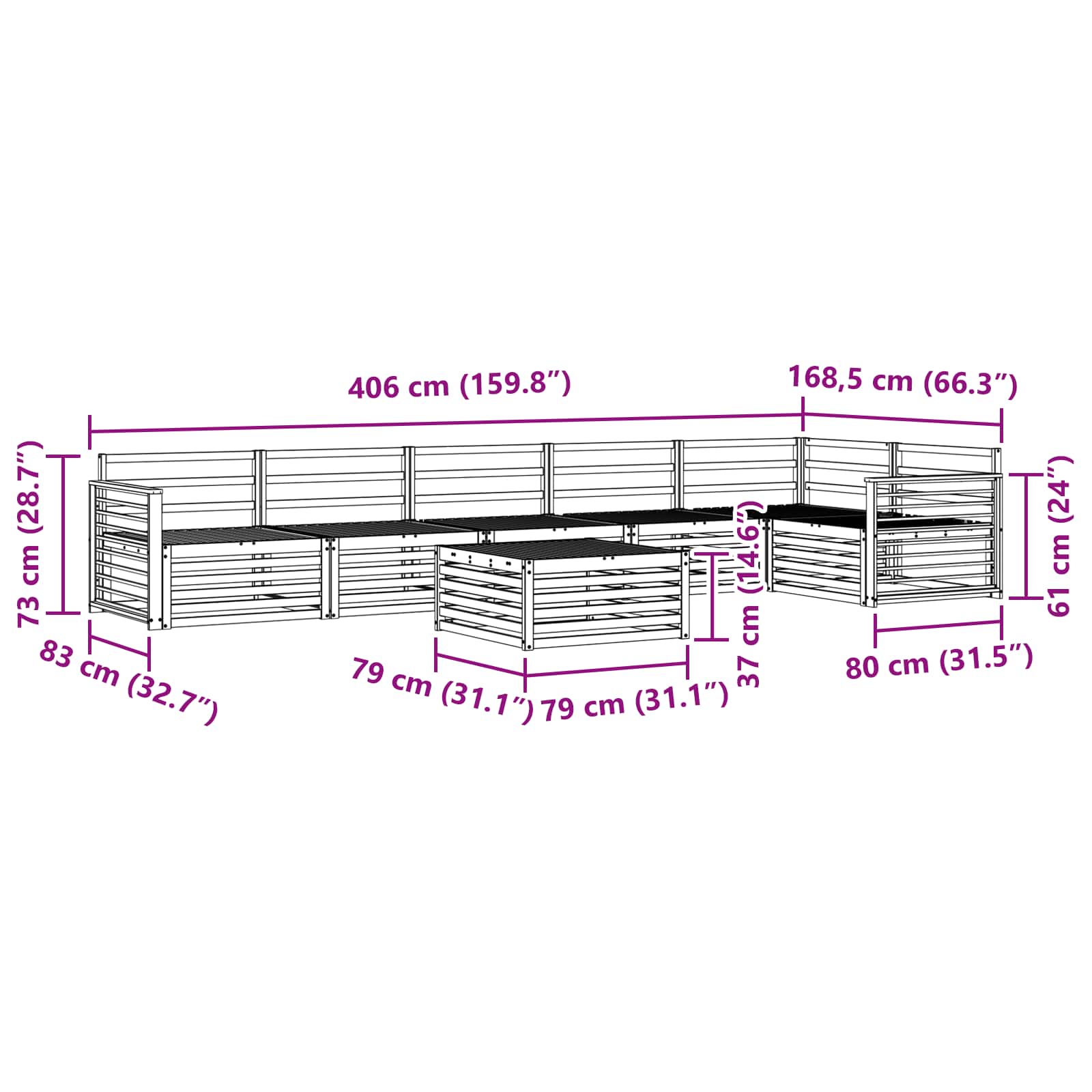 Das Outdoor-Möbelset bringt Stil und Funktionalität zusammen und wird zum beeindruckenden Mittelpunkt für jeden Garten oder jede Terrasse. Das moderne Design mit klaren Linien und minimalen Details sorgt für Eleganz, während es gleichzeitig die Entspannung und das Zusammensein im Freien fördert. Das Set aus solidem Akazienholz garantiert Langlebigkeit und anhaltende visuelle Anziehungskraft und ist perfekt für alle, die praktische und schicke Designs für ihre Outdoor-Möbel suchen. Langlebiges massives Akazienholz: Dieses Outdoor-Möbelset ist aus solidem Akazienholz gefertigt und bekannt für seine Langlebigkeit sowie Widerstandsfähigkeit gegen äußere Bedingungen. Die robuste Bauweise sorgt für Haltbarkeit und Stabilität, während die warme Holzfarbe jeden Garten oder Terrasse aufhellt. Wetterbeständiges Design: Die lackierte Oberfläche schützt gegen Sonne, leichten Regen und andere Umwelteinflüsse. Das polierte Finish hilft, sowohl das Aussehen als auch die Funktionalität zu erhalten, sodass du eine lange Haltbarkeit für deinen Garten, deine Terrasse oder deinen Balkon genießen kannst. Komponenten & Design: Jedes Stück, vom Armrest über Rückenlehnen, hat sowohl Stil als auch Funktion, mit Extras, die zusätzlichen Komfort bieten. Das einheitliche Design sorgt dafür, dass alles gut zusammenpasst und für verschiedene Anlässe im Freien harmonisch aussieht. Komfort & Vielseitigkeit: Das modulare Design bietet flexible Anordnungsmöglichkeiten, die an unterschiedliche Räume und Bedürfnisse anpassbar sind. Ideal zum Entspannen, für Treffen mit Freunden oder ruhige Lesemomente, fügt sich dieses Set mühelos in jede Außenumgebung ein und maximiert Komfort und Funktionalität. Einfache Pflege & Wartung: Halte die Möbel in gutem Zustand, indem du die Oberfläche mit einem feuchten Tuch abwischst und scharfe Reinigungsmittel vermeidest. Regelmäßige Pflege hilft, das Aussehen der Möbel zu bewahren und ihre Lebensdauer zu verlängern.