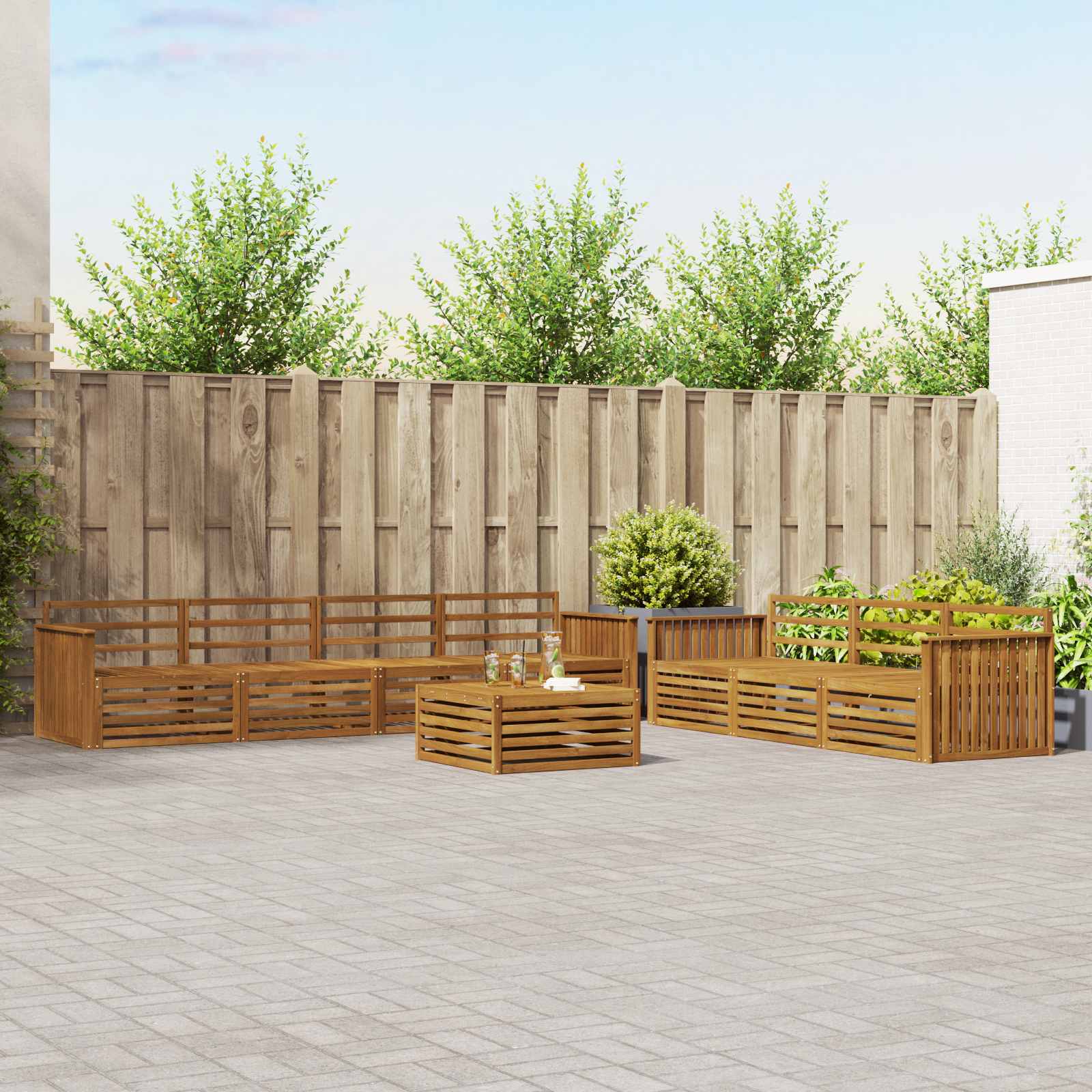 Das Gartenmöbelset kombiniert Stil und Funktion zu einem echten Hingucker für jeden Garten oder jede Terrasse. Das moderne Design mit klaren Linien sorgt für Eleganz und ist perfekt für entspannte Stunden im Freien oder gesellige Treffen mit Freunden. Aus massivem Akazienholz gefertigt, bietet das Set nicht nur Langlebigkeit, sondern sieht auch klasse aus. Es ist die ideale Wahl für alle, die praktische und schöne Gartenmöbel suchen. Langlebiges Massivholz Akazie: Hergestellt aus robustem Akazienholz ist dieses Outdoor-Möbelset nicht nur langlebig, sondern auch widerstandsfähig gegen alle äußeren Einflüsse. Die starke Bauweise sorgt für Stabilität, während der warme Farbton deinem Garten oder deiner Terrasse einen schönen Akzent verleiht. Wetterfeste Konstruktion: Die Möbel haben eine lackierte Oberfläche, die zusätzlichen Schutz gegen Sonne, Regen und andere Witterungen bietet. Das macht sie pflegeleicht und sorgt für eine lange Lebensdauer, egal ob im Garten, auf der Terrasse oder im Hinterhof. Komponenten & Design: Jedes Teil vom Rahmen bis zu den Rückenlehnen ist durchdacht gestaltet. Die unterstützenden Features sorgen für zusätzlichen Komfort, während das harmonische Design zu einem tollen Gesamtbild beiträgt, das bei allen Anlässen im Freien passt. Komfort & Vielseitigkeit: Das modulare Design lässt sich flexibel an verschiedene Räume und Bedürfnisse anpassen. Ideal für ruhige Lesemomente, gesellige Abende oder einfach zum Relaxen – dieses Set macht in jeder Umgebung eine gute Figur und bietet maximalen Komfort. Einfache Pflege & Wartung: Um die Möbel schön zu halten, wische die Oberfläche mit einem feuchten Tuch ab und verwende keine starken Reiniger. So bleibt das Aussehen erhalten und die Lebensdauer der Möbel verlängert sich.