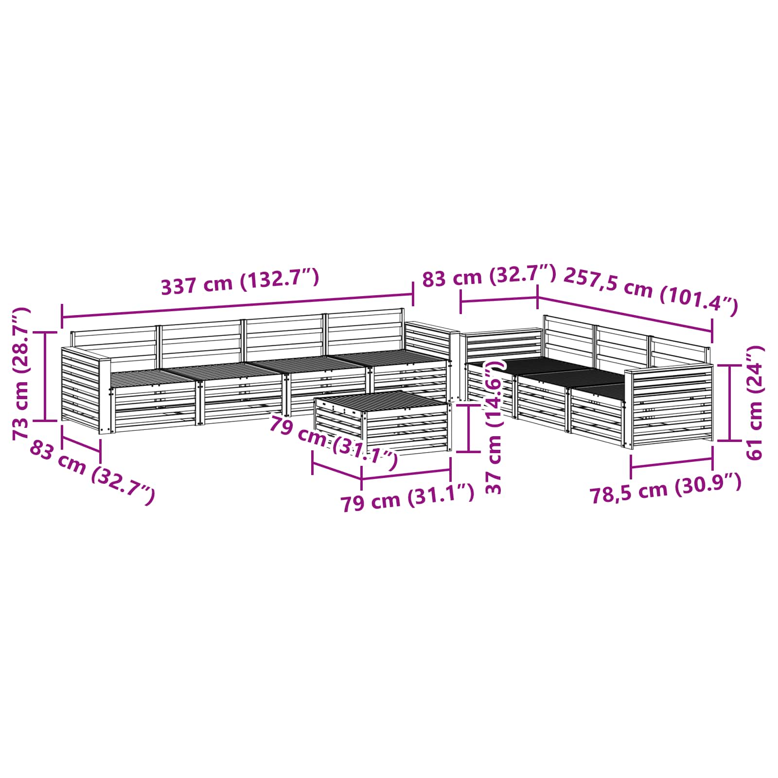 - Gesamtabmessungen: 79 x 79 x 37 cm (L x B x H)