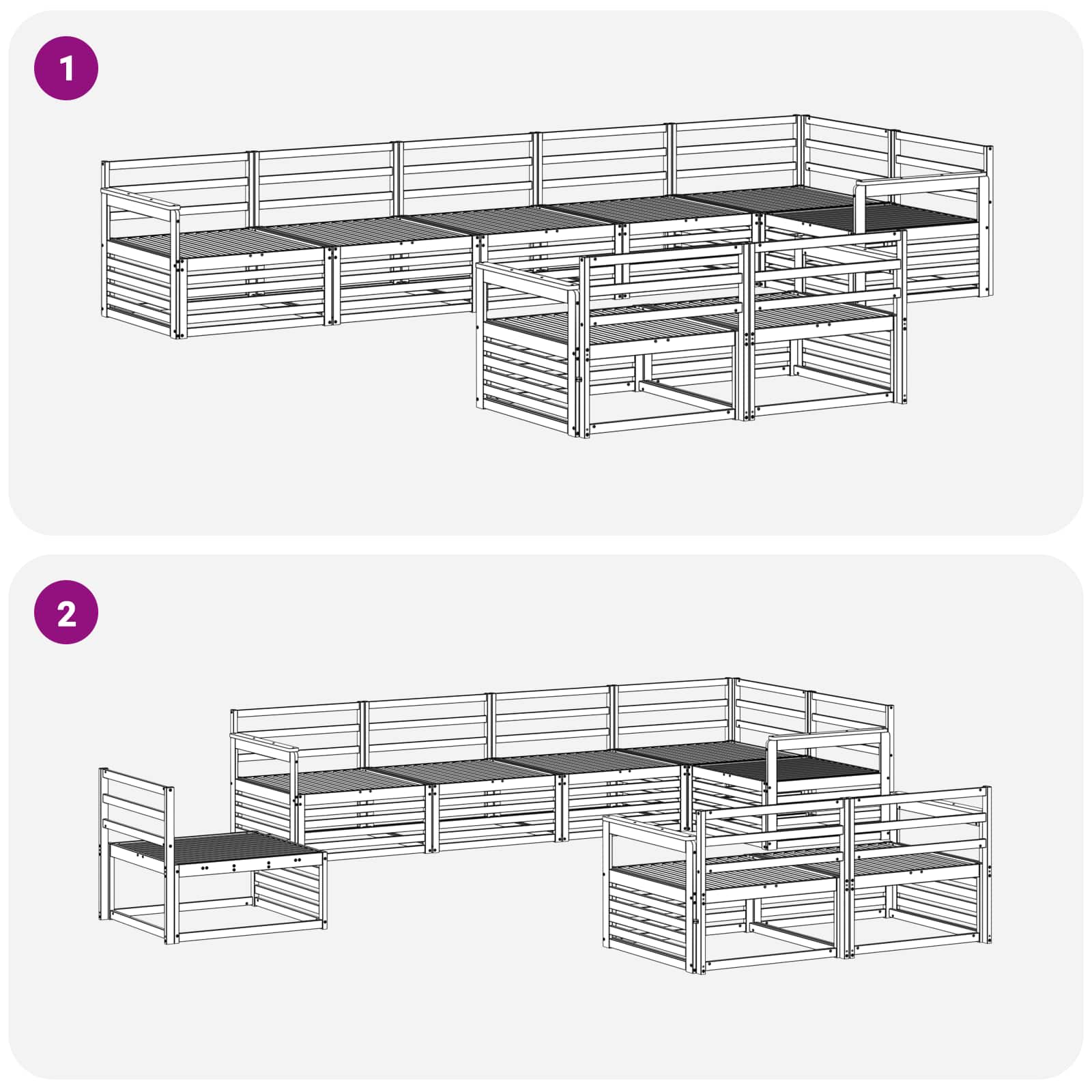 Dieses Outdoor-Sofa-Set vereint moderne Eleganz mit praktischem Komfort und passt super in jeden Garten oder auf jede Terrasse. Die schlichte und klare Ästhetik wird durch den minimalistischen Stil und den warmen Farbton des massiven Akazienholzes geprägt. Ideal zum Entspannen im Freien – es kombiniert Langlebigkeit mit der Flexibilität eines modularen Designs, das kreative Anordnungen erlaubt, ob für Entspannung, Unterhaltung oder lockere Gespräche. Jedes Element wertet das Gartenambiente auf und schafft eine einladende Atmosphäre für Zusammenkünfte oder für ruhige Momente ganz für sich. Massive Materialien: Das Sofaset besteht komplett aus solidem Akazienholz und bietet eine stabile, langlebige Grundlage für den Außenbereich. Die natürliche Maserung und warmen Brauntöne sorgen für einen schönen, harmonischen Look. Diese Materialwahl steht für Zuverlässigkeit und Haltbarkeit, denn Akazie hält der Witterung stand und sieht auch nach Jahren noch gut aus. Funktion und Design: Mit dem modularen Rahmen kannst du das Sofa nach deinen Räumen und Sitzbedürfnissen umstellen. Der Lattenrücken sorgt für eine bequeme Lehne und gute Luftzirkulation, was an heißen Tagen besonders wichtig ist. Ergonomische Armlehnen bieten zusätzlichen Komfort für längere Aufenthalte. Vielseitige Komponenten: Dank des stabilen Lattenrahmens ist dieses Stück auch bei häufigem Gebrauch beständig und lädt zum Entspannen ein. Die warmen braunen Arm- und Rückenlehnen ergänzen die robuste Struktur perfekt und bringen Stil und Komfort zusammen. Ideal für sonnige Gärten und lebendige Terrassen. Moderne Anpassungsfähigkeit: Stilvoll und minimalistisch, zeigt sich das Sofa-Set in einem modernen Design mit klaren Linien. Perfekt für zeitgenössische Außenbereiche, erfüllt es funktionale und stilvolle Ansprüche und schafft eine entspannende Atmosphäre, die man mit Freunden teilen oder allein genießen kann. Einfache Pflege: Um das schöne Aussehen zu bewahren, reicht es, es mit einem feuchten Tuch abzuwischen. Diese einfache Pflege sorgt dafür, dass das Sofa-Set immer attraktiv aussieht, auch wenn viel Betrieb herrscht oder sich die Jahreszeiten ändern.