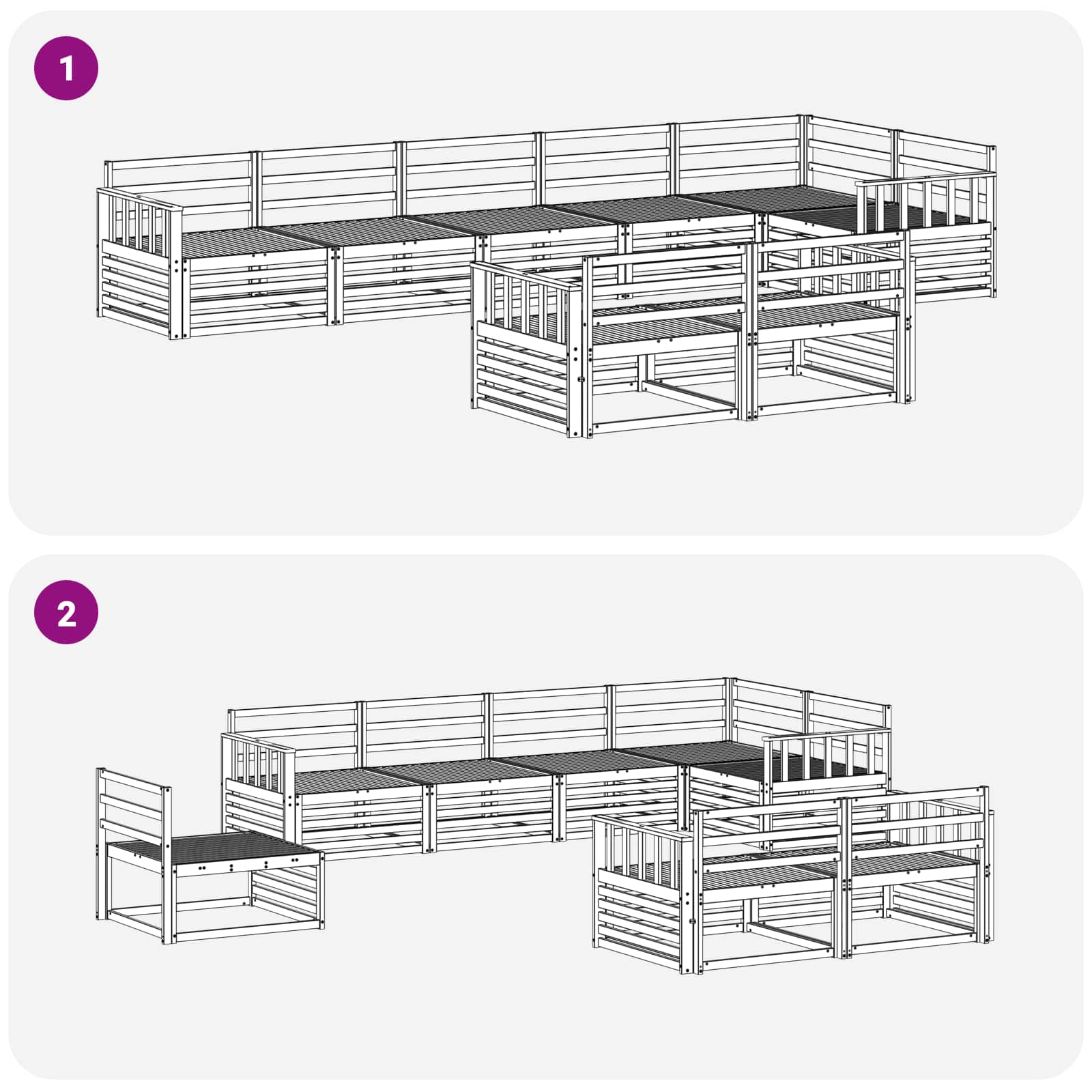 Dieses Outdoor-Sofa-Set vereint moderne Eleganz mit praktischem Komfort und passt super in jeden Garten oder auf jede Terrasse. Die schlichte und klare Ästhetik wird durch den minimalistischen Stil und den warmen Farbton des massiven Akazienholzes geprägt. Ideal zum Entspannen im Freien – es kombiniert Langlebigkeit mit der Flexibilität eines modularen Designs, das kreative Anordnungen erlaubt, ob für Entspannung, Unterhaltung oder lockere Gespräche. Jedes Element wertet das Gartenambiente auf und schafft eine einladende Atmosphäre für Zusammenkünfte oder für ruhige Momente ganz für sich. Massive Materialien: Das Sofaset besteht komplett aus solidem Akazienholz und bietet eine stabile, langlebige Grundlage für den Außenbereich. Die natürliche Maserung und warmen Brauntöne sorgen für einen schönen, harmonischen Look. Diese Materialwahl steht für Zuverlässigkeit und Haltbarkeit, denn Akazie hält der Witterung stand und sieht auch nach Jahren noch gut aus. Funktion und Design: Mit dem modularen Rahmen kannst du das Sofa nach deinen Räumen und Sitzbedürfnissen umstellen. Der Lattenrücken sorgt für eine bequeme Lehne und gute Luftzirkulation, was an heißen Tagen besonders wichtig ist. Ergonomische Armlehnen bieten zusätzlichen Komfort für längere Aufenthalte. Vielseitige Komponenten: Dank des stabilen Lattenrahmens ist dieses Stück auch bei häufigem Gebrauch beständig und lädt zum Entspannen ein. Die warmen braunen Arm- und Rückenlehnen ergänzen die robuste Struktur perfekt und bringen Stil und Komfort zusammen. Ideal für sonnige Gärten und lebendige Terrassen. Moderne Anpassungsfähigkeit: Stilvoll und minimalistisch, zeigt sich das Sofa-Set in einem modernen Design mit klaren Linien. Perfekt für zeitgenössische Außenbereiche, erfüllt es funktionale und stilvolle Ansprüche und schafft eine entspannende Atmosphäre, die man mit Freunden teilen oder allein genießen kann. Einfache Pflege: Um das schöne Aussehen zu bewahren, reicht es, es mit einem feuchten Tuch abzuwischen. Diese einfache Pflege sorgt dafür, dass das Sofa-Set immer attraktiv aussieht, auch wenn viel Betrieb herrscht oder sich die Jahreszeiten ändern.
