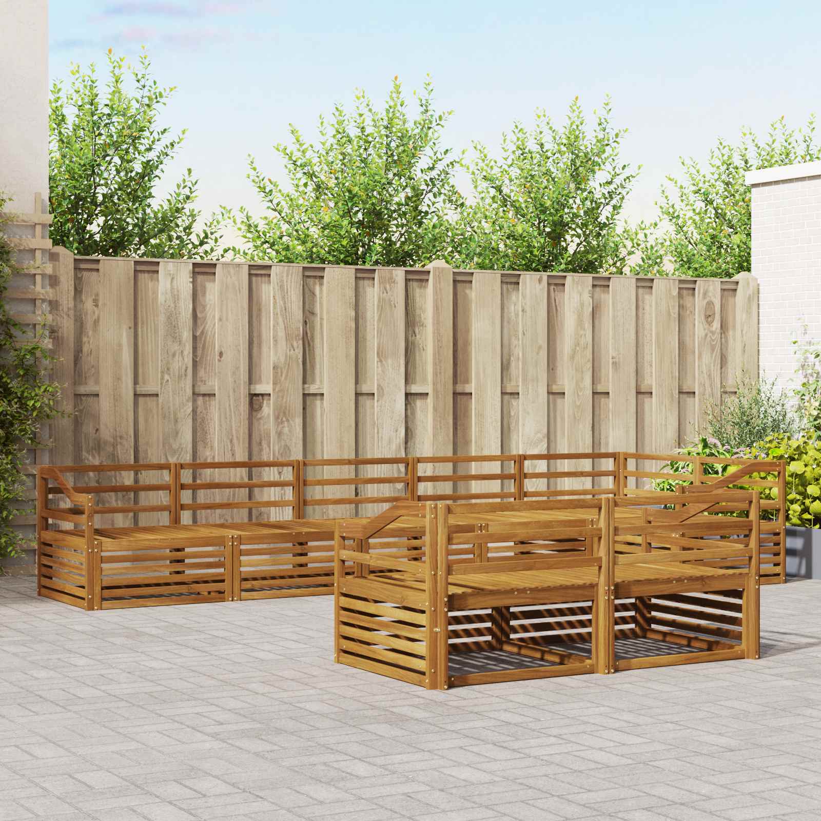 Dieses Outdoor-Sofa-Set vereint moderne Eleganz mit praktischem Komfort und passt super in jeden Garten oder auf jede Terrasse. Die schlichte und klare Ästhetik wird durch den minimalistischen Stil und den warmen Farbton des massiven Akazienholzes geprägt. Ideal zum Entspannen im Freien – es kombiniert Langlebigkeit mit der Flexibilität eines modularen Designs, das kreative Anordnungen erlaubt, ob für Entspannung, Unterhaltung oder lockere Gespräche. Jedes Element wertet das Gartenambiente auf und schafft eine einladende Atmosphäre für Zusammenkünfte oder für ruhige Momente ganz für sich. Massive Materialien: Das Sofaset besteht komplett aus solidem Akazienholz und bietet eine stabile, langlebige Grundlage für den Außenbereich. Die natürliche Maserung und warmen Brauntöne sorgen für einen schönen, harmonischen Look. Diese Materialwahl steht für Zuverlässigkeit und Haltbarkeit, denn Akazie hält der Witterung stand und sieht auch nach Jahren noch gut aus. Funktion und Design: Mit dem modularen Rahmen kannst du das Sofa nach deinen Räumen und Sitzbedürfnissen umstellen. Der Lattenrücken sorgt für eine bequeme Lehne und gute Luftzirkulation, was an heißen Tagen besonders wichtig ist. Ergonomische Armlehnen bieten zusätzlichen Komfort für längere Aufenthalte. Vielseitige Komponenten: Dank des stabilen Lattenrahmens ist dieses Stück auch bei häufigem Gebrauch beständig und lädt zum Entspannen ein. Die warmen braunen Arm- und Rückenlehnen ergänzen die robuste Struktur perfekt und bringen Stil und Komfort zusammen. Ideal für sonnige Gärten und lebendige Terrassen. Moderne Anpassungsfähigkeit: Stilvoll und minimalistisch, zeigt sich das Sofa-Set in einem modernen Design mit klaren Linien. Perfekt für zeitgenössische Außenbereiche, erfüllt es funktionale und stilvolle Ansprüche und schafft eine entspannende Atmosphäre, die man mit Freunden teilen oder allein genießen kann. Einfache Pflege: Um das schöne Aussehen zu bewahren, reicht es, es mit einem feuchten Tuch abzuwischen. Diese einfache Pflege sorgt dafür, dass das Sofa-Set immer attraktiv aussieht, auch wenn viel Betrieb herrscht oder sich die Jahreszeiten ändern.