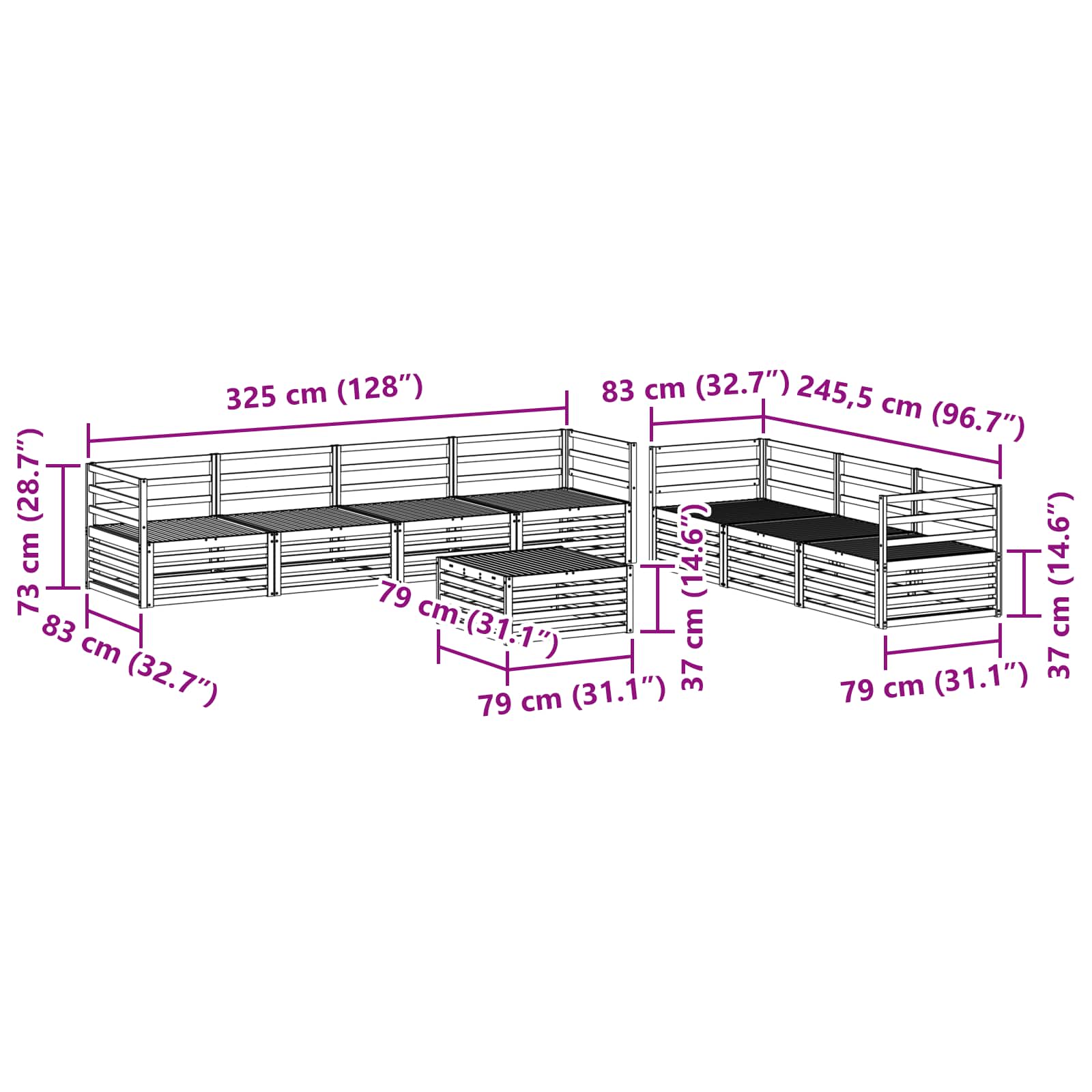 - Gesamtabmessungen: 79 x 79 x 37 cm (L x B x H)