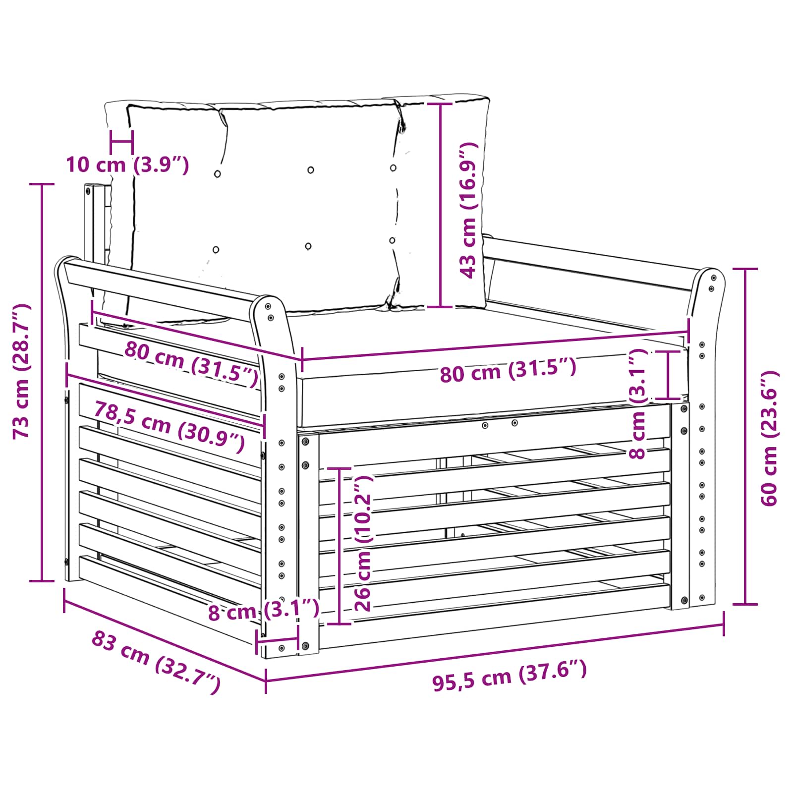 Das Outdoor-Möbelset verbindet Stil und Funktionalität und wird zum echten Hingucker in jedem Garten oder auf jeder Terrasse. Mit seinem modernen Design strahlt es Eleganz aus und ladet zum Entspannen im Freien sowie zu geselligen Treffen ein. Hergestellt aus massivem Akazienholz, sorgt es für Langlebigkeit und hält optisch lange an – perfekt für alle, die praktische und schicke Möbel für den Außenbereich suchen. Langlebiges Massivholz Akazie: Dieses Outdoor-Möbelset, aus solidem Akazienholz gefertigt, ist für seine Langlebigkeit und Witterungsbeständigkeit bekannt. Die robuste Bauweise sorgt für stabilen Halt und langfristige Sicherheit, während der warme, natürliche Farbton jeden Garten oder jede Terrasse aufpeppt. Wetterfestes Design: Die lackierte Oberfläche schützt das Set zusätzlich gegen Sonne, leichten Regen und andere Witterungsbedingungen. Der polierte Look behält Aussehen und Funktionalität und sorgt für dauerhafte Nutzung im Garten, auf der Terrasse oder im Hinterhof. Komponenten & Design: Jedes Element, von den Armlehnen bis zu den Rückenlehnen, ist sowohl stylisch als auch funktionell entworfen. Unterstützende Funktionen sorgen für mehr Komfort, und das einheitliche Design schafft ein harmonisches Gesamtbild, das zu unterschiedlichen Outdoor-Anlässen passt. Komfort & Vielseitigkeit: Das modulare Design ermöglicht flexible Anordnungen, die sich an verschiedene Räume und Bedürfnisse anpassen. Ob für Entspannung, gesellige Runden oder ruhige Lesemomente, dieses Set fügt sich nahtlos in jede Outdoor-Umgebung ein und maximiert den Komfort. Einfache Pflege & Wartung: Um die Möbel in Top-Zustand zu halten, einfach mit einem feuchten Tuch abwischen und aggressive Reinigungsmittel vermeiden. Regelmäßige Pflege hilft, das Aussehen zu bewahren und die Lebensdauer der Möbel zu verlängern.