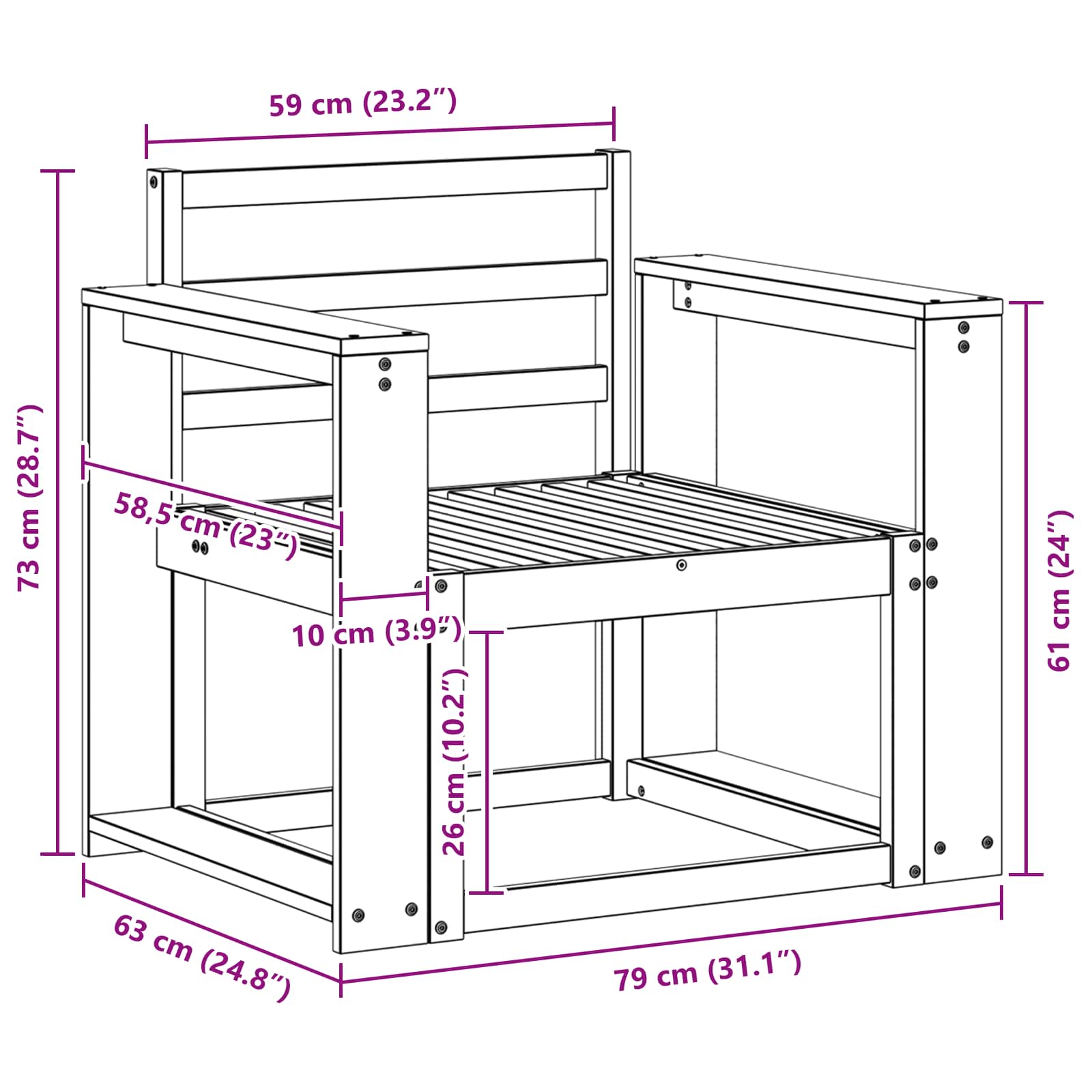 - 2 x Armlehne: 58,5 x 10 x 61 cm (LxBxH)