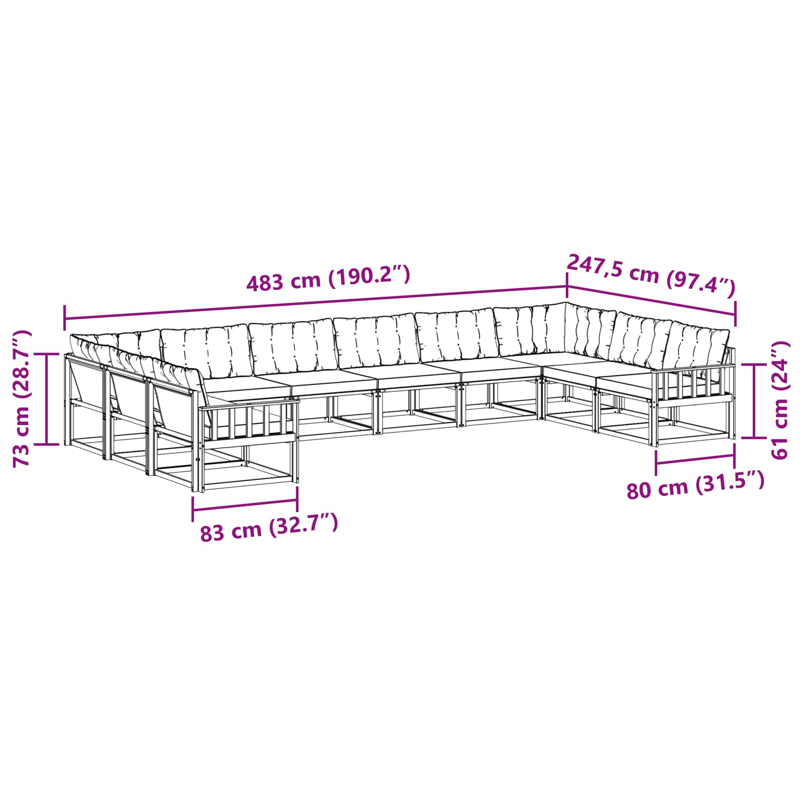 - 12 x Rückenkissen: 80 x 43 x 10 cm (LxBxH)