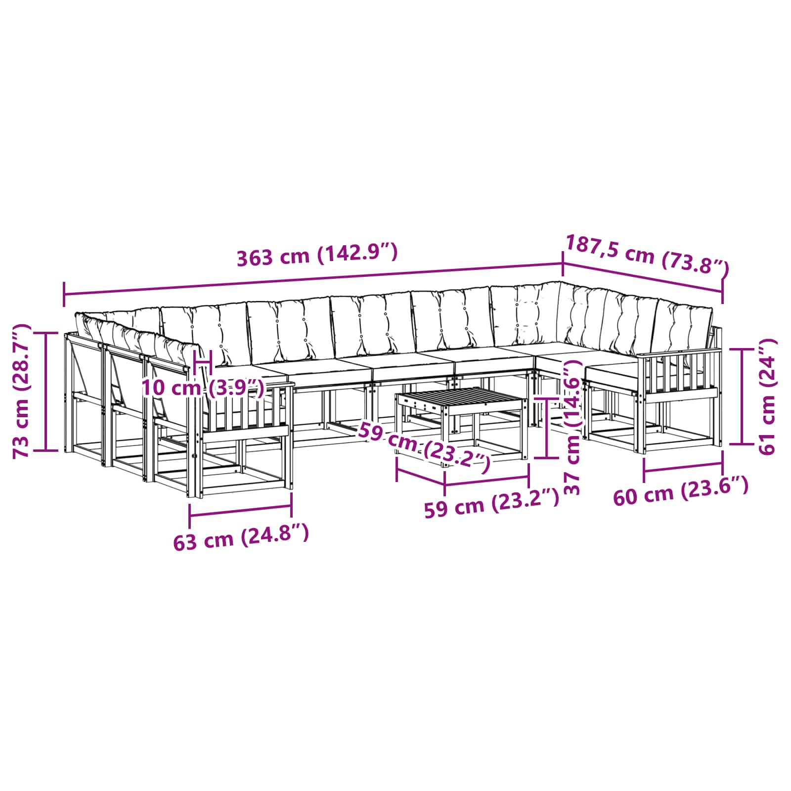 - 12 x Rückenlehne: 60 x 40 x 10 cm (LxBxH)