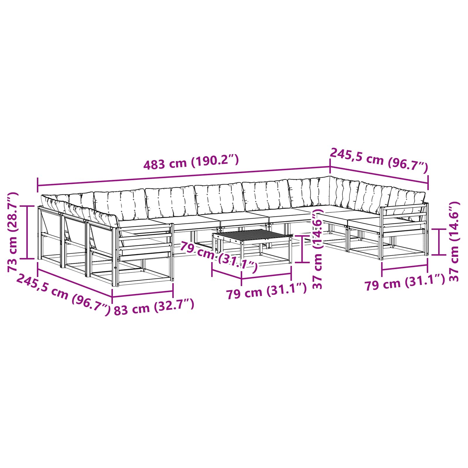 - 8 x Sitzkissen: 80 x 68,5 x 8 cm (LxBxH)