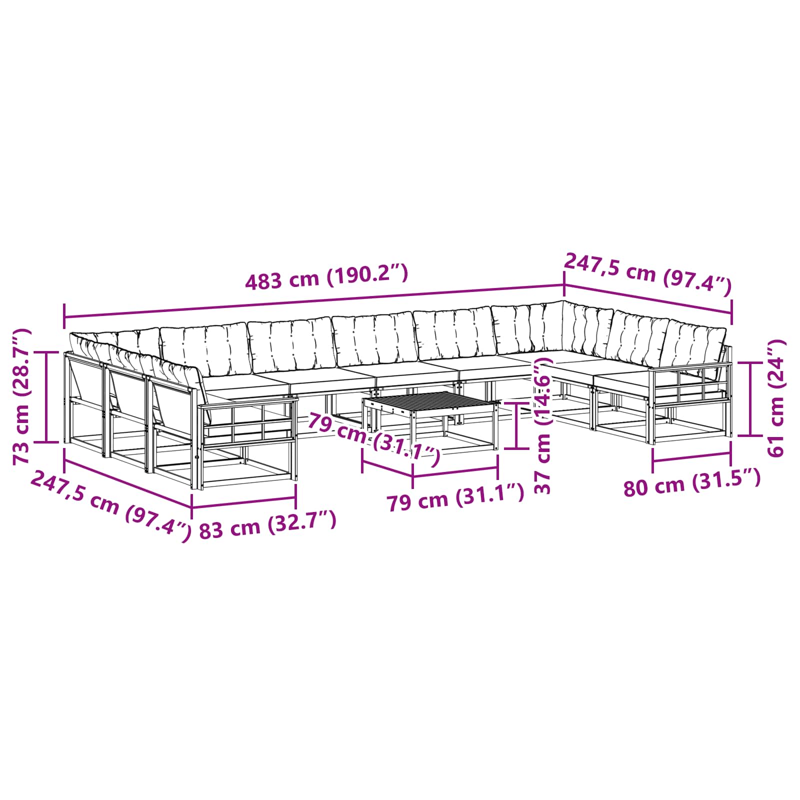 - 12 x Rückenkissen: 80 x 43 x 10 cm (LxBxH)