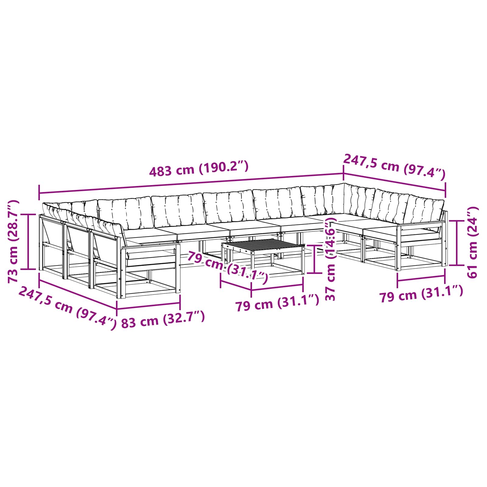 - 12 x Rückenpolster: 80 x 43 x 10 cm (LxBxH)
