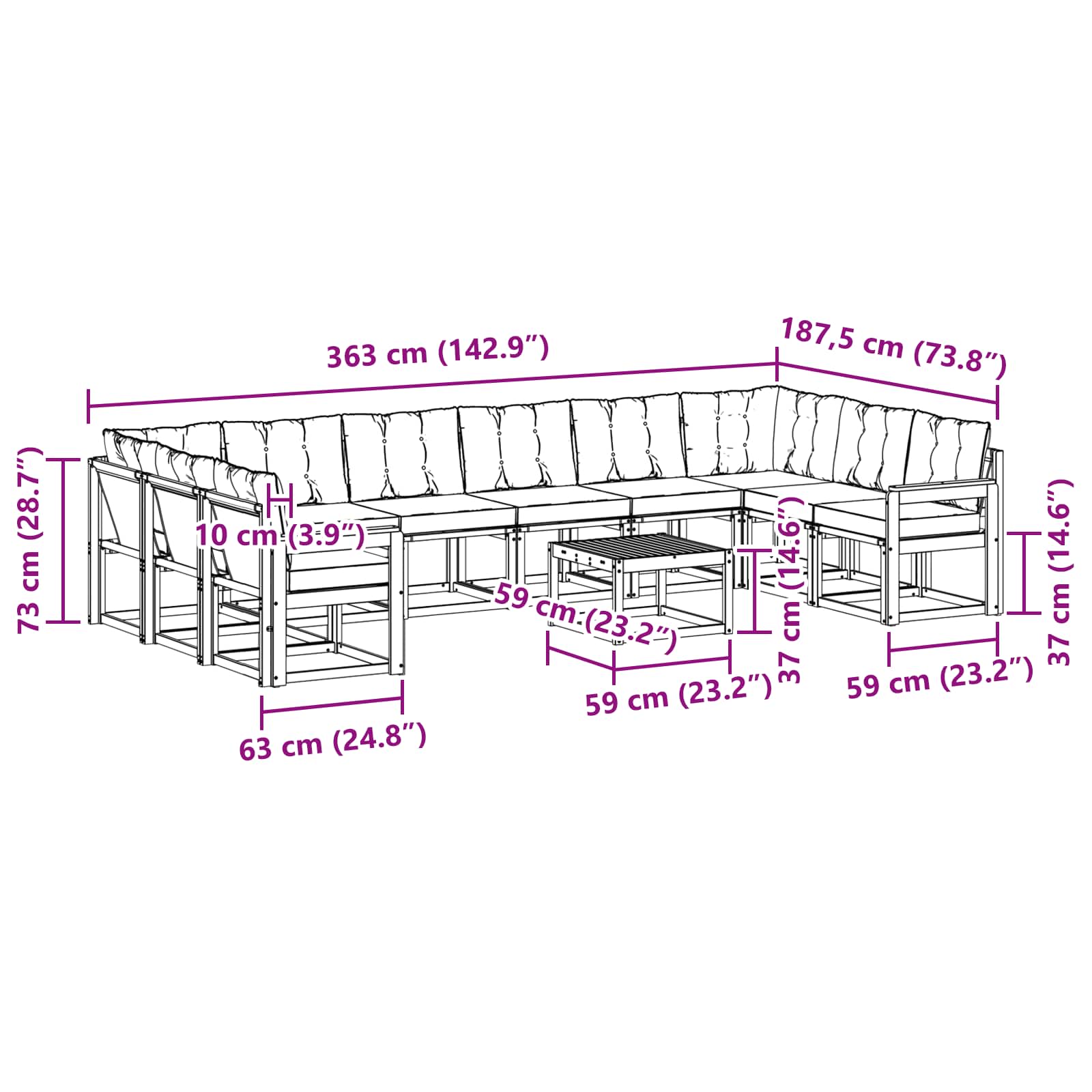 - 12 x Rückenlehne: 60 x 40 x 10 cm (LxBxH)