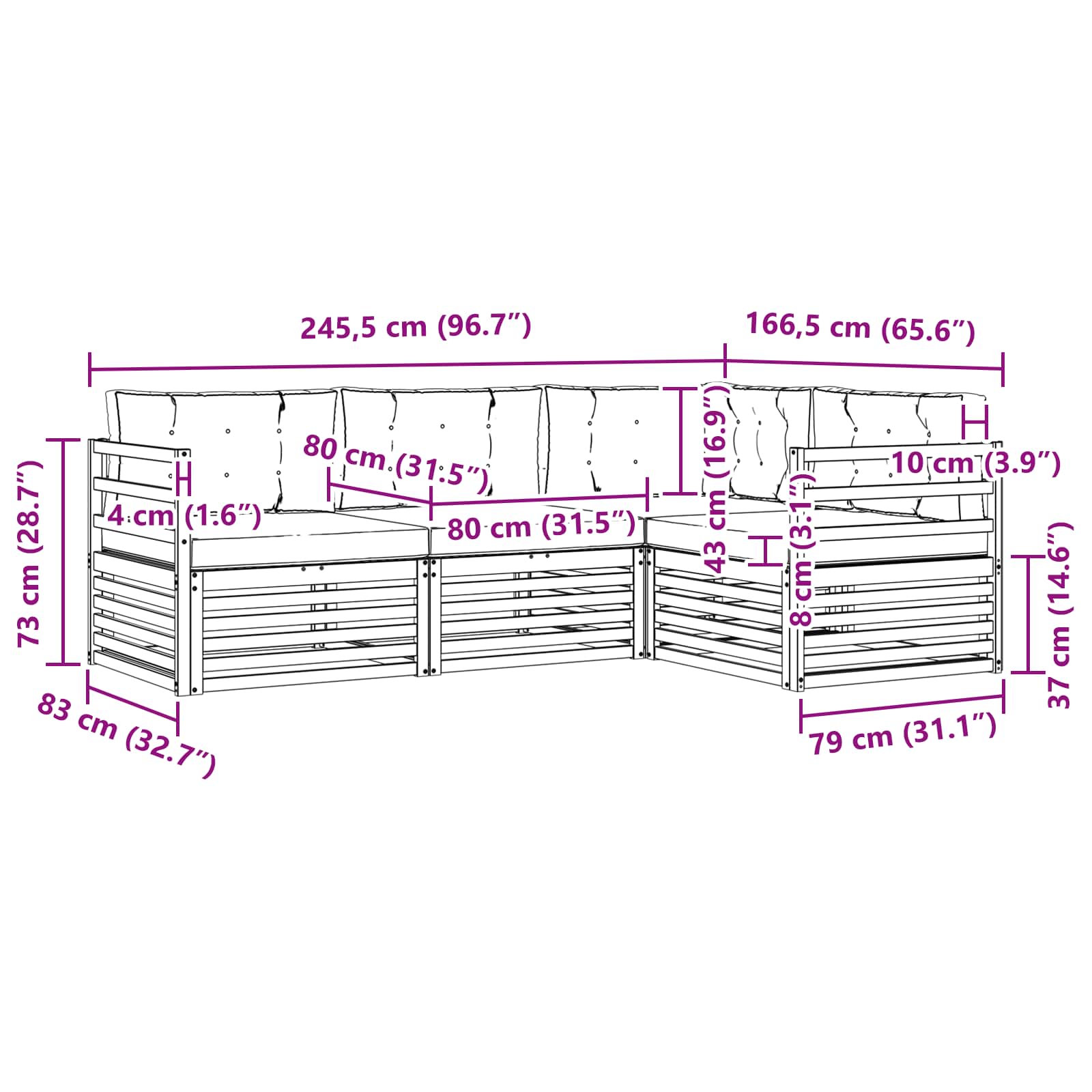 - 4 x Sitzkissen: 80 x 80 x 8 cm (LxBxH)