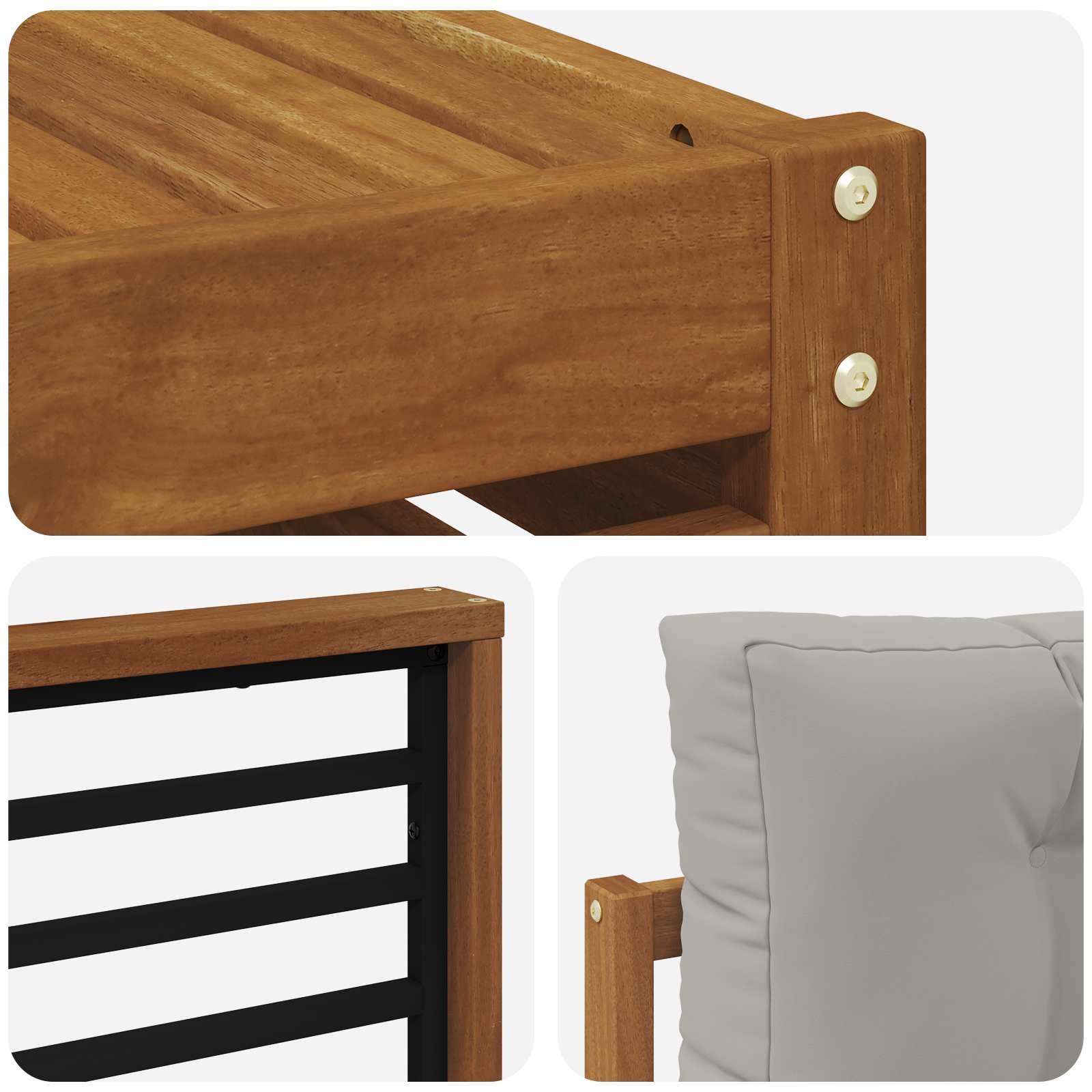Das Outdoor-Möbelset kombiniert Stil und Funktionalität und wird zum Blickfang in jedem Garten oder auf jeder Terrasse. Mit seinem modernen Design, das durch klare Linien und minimalistischen Details besticht, bringt es Eleganz und unterstützt die entspannte Atmosphäre im Freien und gesellige Zusammenkünfte. Komplett aus Akazienholz gefertigt, bietet das Set Langlebigkeit und behält seine Attraktivität, was es zur perfekten Wahl für alle macht, die praktisches und schickes Design in Gartenmöbeln suchen. Langlebiges Akazienholz: Das Outdoor-Möbelset aus Massivholz Akazie ist bekannt für seine Robustheit und Wetterfestigkeit. Die stabile Konstruktion bietet verlässlichen Halt und dauerhaften Komfort, während der warme Braunton jeden Garten oder jede Terrasse aufwertet. Wetterfestes Design: Das Outdoor-Möbelset hat eine lackierte Oberfläche, die zusätzlichen Schutz gegen Sonne, leichten Regen und Wetter bietet. Das polierte Finish sorgt dafür, dass Aussehen und Funktion optimal bleiben und gewährleistet eine lange Haltbarkeit für deinen Garten oder deine Terrasse. Komponenten & Design: Jedes Stück, von Armlehnen bis Rückenlehnen, ist für Stil und Funktionalität entworfen. Unterstützende Merkmale sorgen für mehr Komfort, während das durchgängige Design ein harmonisches Gesamtbild für verschiedene Outdoor-Anlässe schafft. Komfort & Vielseitigkeit: Das modulare Design erlaubt flexible Anordnungen, um unterschiedlichen Bedürfnissen gerecht zu werden. Ob zum Entspannen, für gesellige Runden oder ruhige Lesemomente, dieses Set passt sich perfekt jeder Outdoor-Umgebung an und sorgt für maximalen Komfort. Einfache Pflege: Um die Möbel in gutem Zustand zu halten, wische die Oberfläche einfach mit einem feuchten Tuch ab und verwende keine scharfen Reinigungsmittel. Regelmäßige Pflege hält ihr Aussehen frisch und verlängert die Lebensdauer der Möbel.