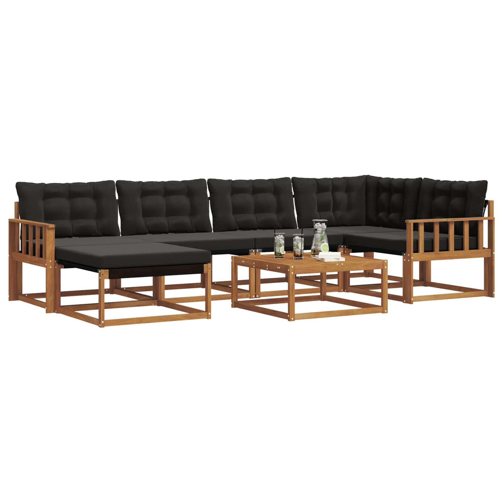 Dieses Garten-Sofa-Set verleiht jedem Garten oder jeder Terrasse einen modernen Touch und vereint Stil und Langlebigkeit. Es ist perfekt für den Außenbereich und bietet Platz für mehrere Personen, wodurch es zum Mittelpunkt jeder Zusammenkunft wird. Massivholz Akazie: Dieses Material hebt die Optik des Sets hervor und sorgt für eine lange Haltbarkeit, selbst bei unterschiedlichen Wetterbedingungen. Die natürlichen Holzfarben passen super in jedes Außendesign und machen das Set zu einer zeitlosen Ergänzung für deinen Garten oder deine Terrasse. Es hält viel aus, sodass du sowohl lebhafte Treffen als auch ruhige Zeiten genießen kannst. Integrierte Komponenten: Das Sofa hat bequeme Armlehnen und einen stabilen Rahmen aus massivem Akazienholz. Die Kissen mit Schaumstofffüllung und das Textilene-Rückenmaterial geben dir dauerhaften Komfort. Die abnehmbaren Sitzkissen mit Reißverschluss sorgen für leichten Komfort und einfache Pflege. Funktionale Merkmale: Dieses Set ist für den Außenbereich designt, lichtbeständig und lässt sich einfach abwischen, damit es immer frisch bleibt. Die unterstützende Rückenlehne hilft einer guten Haltung während des Entspannens. Die praktischen Armlehnen machen das Lounge-Erlebnis noch entspannter. Vielseitige Verwendung: Dieses Sofa passt perfekt in jedem Gartenmöbel-Set. Nutze es, um Gäste zu bewirten, für Tee-Partys oder um einen entspannten Abend mit einem Buch zu genießen. Sein Design passt super zu modernen Räumen und macht es zu einer perfekten Wahl für stylische Nachmittage im Freien. Einfache Pflege: Um den Look zu erhalten, wische einfach mit einem feuchten Tuch drüber. Diese pflegeleichte Routine hält das Sofa-Set zu jeder Jahreszeit frisch und einladend. Schütze deine Investition ins Outdoor-Leben und genieße einen langanhaltenden Begleiter in deinem Garten.