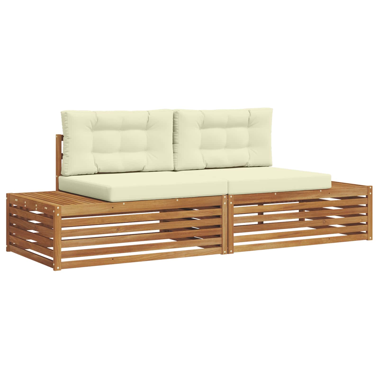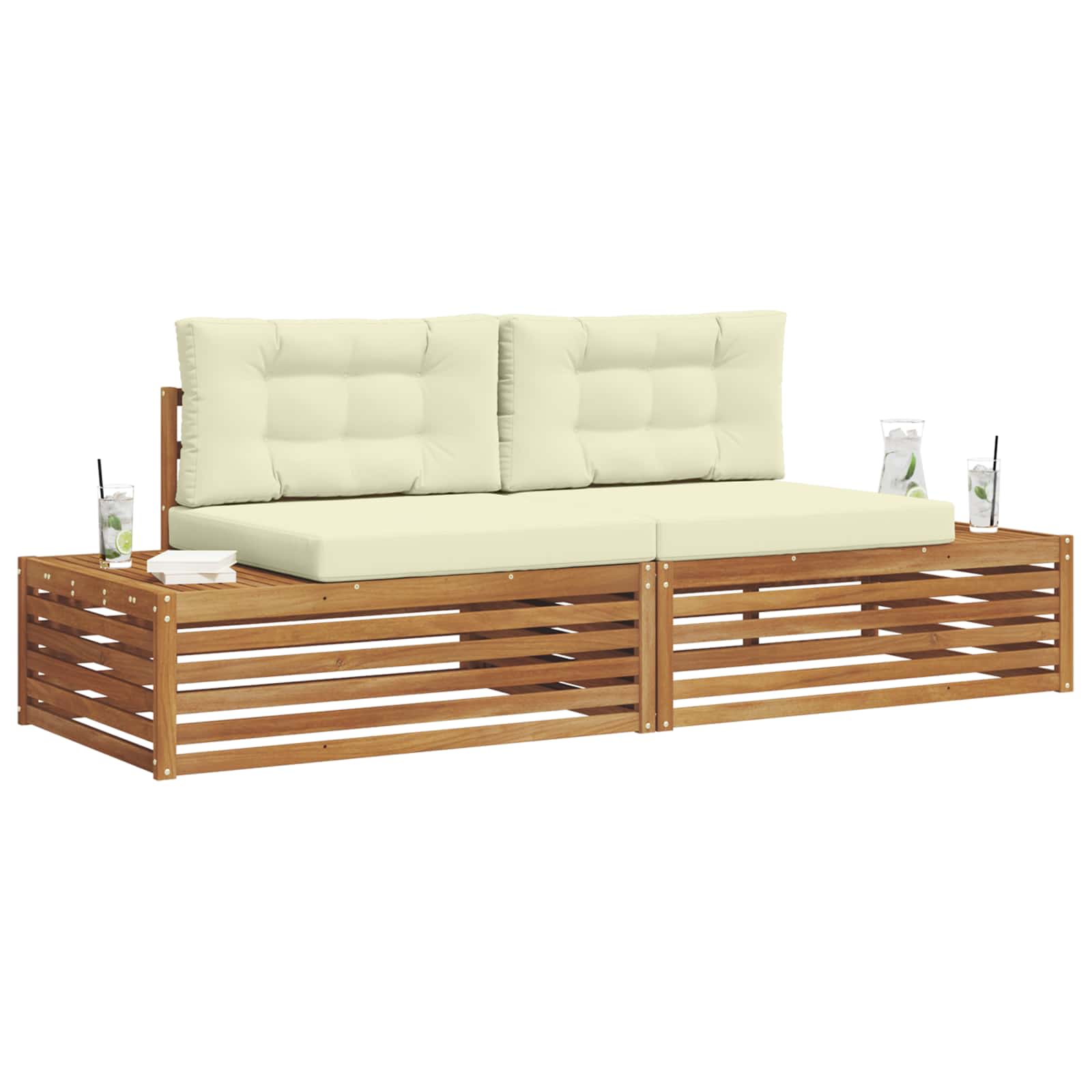 Das Gartenmöbelset ist stylish und praktisch und wird zum echten Blickfang für jeden Garten oder Terrasse. Mit seinem modernen Design, klaren Linien und minimalistischen Details bringt es Eleganz und sorgt gleichzeitig für eine entspannte Atmosphäre bei geselligen Zusammenkünften im Freien. Komplett aus massivem Akazienholz gefertigt, bietet das Set Langlebigkeit und anhaltende Schönheit und ist ideal für alle, die nach praktischen und schicken Gartenmöbeln suchen. Langlebiges Massivholz Akazie: Aus solidem Akazienholz gefertigt, ist dieses Gartenmöbelset super stabil und widerstandsfähig gegen verschiedene Wetterbedingungen. Die robuste Bauweise sorgt für starke Unterstützung und lange Haltbarkeit, während der warme natürliche Farbton jedem Garten- oder Terrassendesign einen Schub gibt. Wetterbeständiges Design: Mit einer lackierten Oberfläche, die zusätzlich gegen Sonnenlicht, leichten Regen und äußere Einflüsse schützt, bietet dieses Gartenmöbelset mehr als nur gutes Aussehen. Das polierte Finish hilft, sowohl die Optik als auch die Funktionalität zu bewahren und sorgt für lange Lebensdauer in deinem Garten, auf der Terrasse oder im Hinterhof. Komponenten und Design: Jedes Teil, von Armlehnen bis zu Rückenlehnen, ist sowohl schick als auch funktional gestaltet. Unterstützende Details bieten extra Komfort, während das durchgängige Design ein harmonisches Gesamtbild schafft, das für verschiedene Anlässe im Freien perfekt ist. Komfort und Vielseitigkeit: Das modulare Design erlaubt flexible Anordnungen, die auf unterschiedliche Räume und Bedürfnisse eingehen. Ob zum Entspannen, für fröhliche Treffen oder ruhige Lesezeiten – dieses Set passt sich super an jede Umgebung im Freien an und sorgt für maximalen Komfort. Einfache Pflege und Wartung: Um die Möbel in Schuss zu halten, reicht ein feuchtes Tuch zur Reinigung; vermeide starke oder scheuernde Reiniger. Mit etwas regelmäßiger Pflege bleibt das Aussehen erhalten und die Lebensdauer der Möbel wird verlängert.