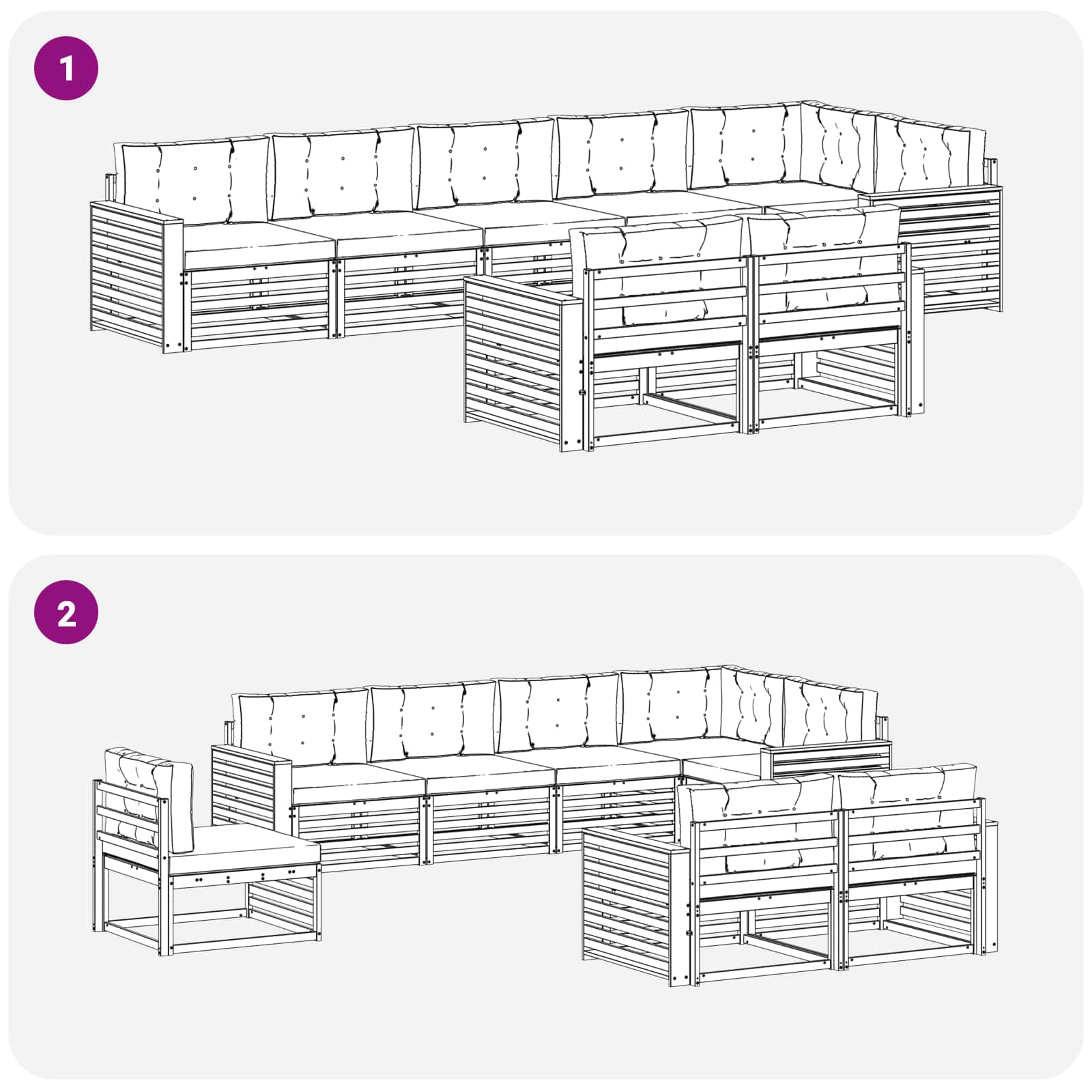 - 8 x Sitzkissen: 80 x 80 x 8 cm (LxBxH)