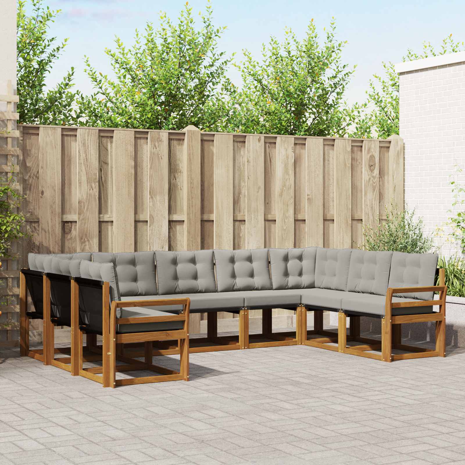 Dieses Sofa-Set bringt Style und Gemütlichkeit in deinen Außenbereich. Es sieht nicht nur gut aus, sondern ist auch super funktionell für Garten und Terrasse. Das moderne Design sorgt für eine einladende Atmosphäre, perfekt zum Chillen oder für Gespräche mit Freunden. Wenn du Wert auf eine schöne Umgebung legst, ist dieses Set mit seinen schlanken Linien und strapazierfähigen Materialien die ideale Wahl für deine Wohlfühloase im Freien. Materialien: Der Rahmen des Sofa-Sets ist aus solidem Akazienholz gearbeitet, das Stärke und eine schöne Optik vereint. Dieses hochwertig verarbeitete Holz hat eine ansprechende Struktur und hält gut den Witterungsbedingungen stand. Textilene für die Sitzfläche ist super bequem, wird nicht schnell fade und ist langlebig – perfekt für Sonne und Regen. Enthaltene Komponenten: Jeder Teil des Sofa-Sets sorgt für Gemütlichkeit und Nutzen. Es gibt plüschige Outdoorkissen, die perfekt gefüllt sind für bequemen Sitzkomfort. Die Kissen sind dank einem Reißverschluss leicht abnehmbar und waschbar. Die Armlehnen aus massivem Akazienholz bieten Unterstützung und einen angenehmen Platz zum Relaxen. Funktionen / Nutzung / Design: Mit einer unterstützenden Rückenlehne und weicher Polsterung wurde der Komfort hier großgeschrieben. Das moderne Design fügt sich super in verschiedene Gartenlandschaften ein und bietet einen schicken Platz für Outdoor-Events, entspannte Abende oder ruhige Morgensitzungen mit einem guten Buch. Empfohlene Verwendungen: Ideal für Gärten und Terrassen. Dieses Sofa-Set erfüllt die Wünsche von allen, die nach Komfort und Style für Draußen suchen. Ob auf einer sonnigen Terrasse oder in einem schattigen Garten — es macht dein Außenleben schöner und einladend für alle. Pflege & Wartung: Damit das Sofa-Set gut aussieht und lange hält, braucht es nur wenig Pflege: Wische die Oberflächen einfach mit einem feuchten Tuch ab, um Staub und Flecken zu entfernen. Die abnehmbaren Kissenbezüge machen die Reinigung kinderleicht, und die Holzteile sollten gelegentlich mit Öl behandelt werden, damit sie schön glänzen.