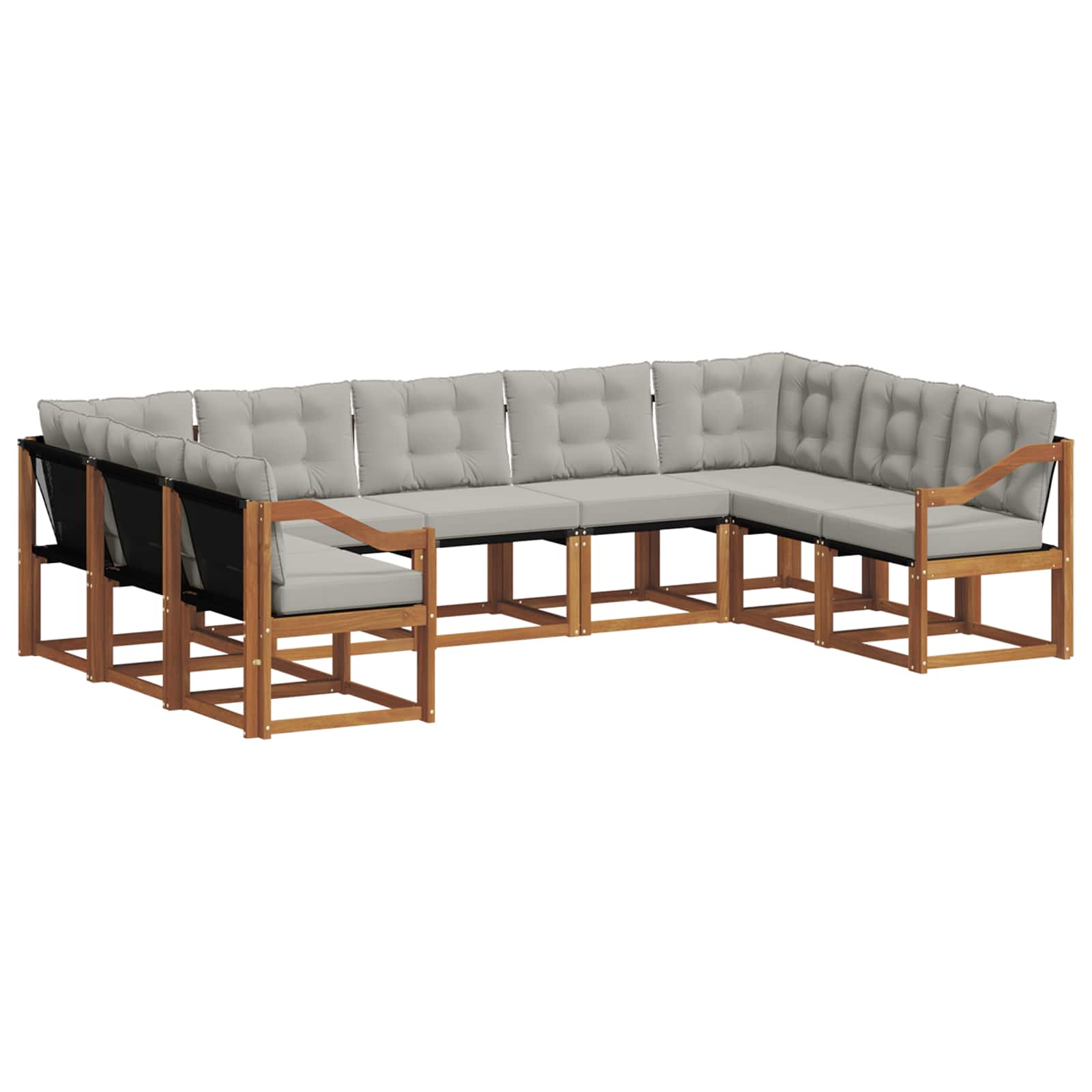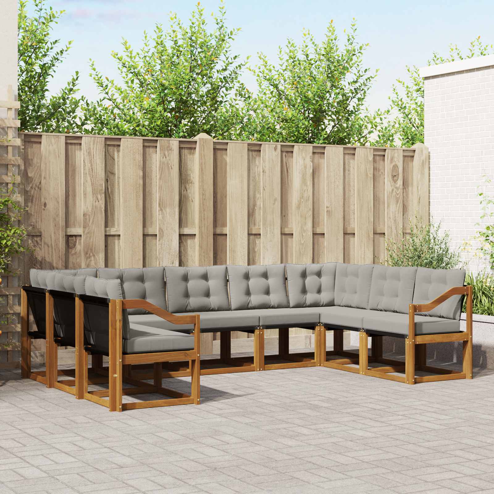 Dieses Sofa-Set bringt Style und Gemütlichkeit in deinen Außenbereich. Es sieht nicht nur gut aus, sondern ist auch super funktionell für Garten und Terrasse. Das moderne Design sorgt für eine einladende Atmosphäre, perfekt zum Chillen oder für Gespräche mit Freunden. Wenn du Wert auf eine schöne Umgebung legst, ist dieses Set mit seinen schlanken Linien und strapazierfähigen Materialien die ideale Wahl für deine Wohlfühloase im Freien. Materialien: Der Rahmen des Sofa-Sets ist aus solidem Akazienholz gearbeitet, das Stärke und eine schöne Optik vereint. Dieses hochwertig verarbeitete Holz hat eine ansprechende Struktur und hält gut den Witterungsbedingungen stand. Textilene für die Sitzfläche ist super bequem, wird nicht schnell fade und ist langlebig – perfekt für Sonne und Regen. Enthaltene Komponenten: Jeder Teil des Sofa-Sets sorgt für Gemütlichkeit und Nutzen. Es gibt plüschige Outdoorkissen, die perfekt gefüllt sind für bequemen Sitzkomfort. Die Kissen sind dank einem Reißverschluss leicht abnehmbar und waschbar. Die Armlehnen aus massivem Akazienholz bieten Unterstützung und einen angenehmen Platz zum Relaxen. Funktionen / Nutzung / Design: Mit einer unterstützenden Rückenlehne und weicher Polsterung wurde der Komfort hier großgeschrieben. Das moderne Design fügt sich super in verschiedene Gartenlandschaften ein und bietet einen schicken Platz für Outdoor-Events, entspannte Abende oder ruhige Morgensitzungen mit einem guten Buch. Empfohlene Verwendungen: Ideal für Gärten und Terrassen. Dieses Sofa-Set erfüllt die Wünsche von allen, die nach Komfort und Style für Draußen suchen. Ob auf einer sonnigen Terrasse oder in einem schattigen Garten — es macht dein Außenleben schöner und einladend für alle. Pflege & Wartung: Damit das Sofa-Set gut aussieht und lange hält, braucht es nur wenig Pflege: Wische die Oberflächen einfach mit einem feuchten Tuch ab, um Staub und Flecken zu entfernen. Die abnehmbaren Kissenbezüge machen die Reinigung kinderleicht, und die Holzteile sollten gelegentlich mit Öl behandelt werden, damit sie schön glänzen.