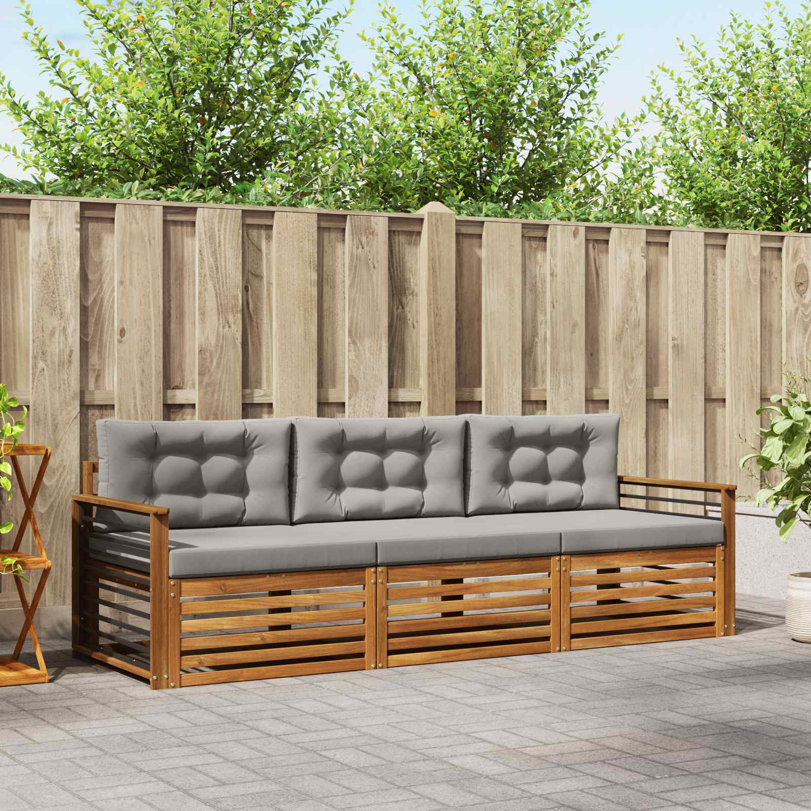 Das Outdoormöbel-Set bringt Stil und Funktion zusammen und wird zum Hingucker in jedem Garten oder auf der Terrasse. Das moderne Design mit klaren Linien und einfachen Details sorgt für Eleganz, während es gleichzeitig entspannende und gesellige Momente im Freien fördert. Komplett aus massivem Akazienholz gefertigt, steht das Set für Langlebigkeit und zieht die Blicke an – perfekt für alle, die praktische, aber schicke Outdoormöbel wollen. Langlebiges massives Akazienholz: Dieses Outdoormöbel-Set ist robust und hält Witterungseinflüssen stand. Die stabile Bauweise sorgt für Langlebigkeit, während der natürliche Farbton deinem Garten oder deiner Terrasse eine warme Note verleiht. Wetterbeständiges Design: Das Möbel-Set hat eine lackierte Oberfläche, die es vor Sonnenschein, leichtem Regen und anderen Witterungen schützt. Der polierte Finish hält das Aussehen frisch und sorgt für langanhaltende Qualität in deinem Garten oder auf der Terrasse. Stil & Design: Jedes Stück, von den Armlehnen bis zur Rückenlehne, ist für Stil und Funktionalität durchdacht. Ergonomische Elemente bieten extra Komfort und das schicke Design macht es zu einem harmonischen Ensemble für jede Outdoor-Party. Komfort & Flexibilität: Das modulare Design erlaubt dir verschiedene Anordnungen, die auf die Gegebenheiten und deine Bedürfnisse abgestimmt sind. Perfekt zum Entspannen oder für gesellige Stunden, passt sich dieses Set mühelos an und sorgt für Wohlfühlatmosphäre. Einfach zu pflegen: Damit die Möbel schön bleiben, reicht es, die Oberflächen mit einem feuchten Tuch abzuwischen und aggressive Reiniger zu meiden. Regelmäßige Pflege hilft, die Möbel im besten Zustand zu halten und ihre Lebensdauer zu verlängern.