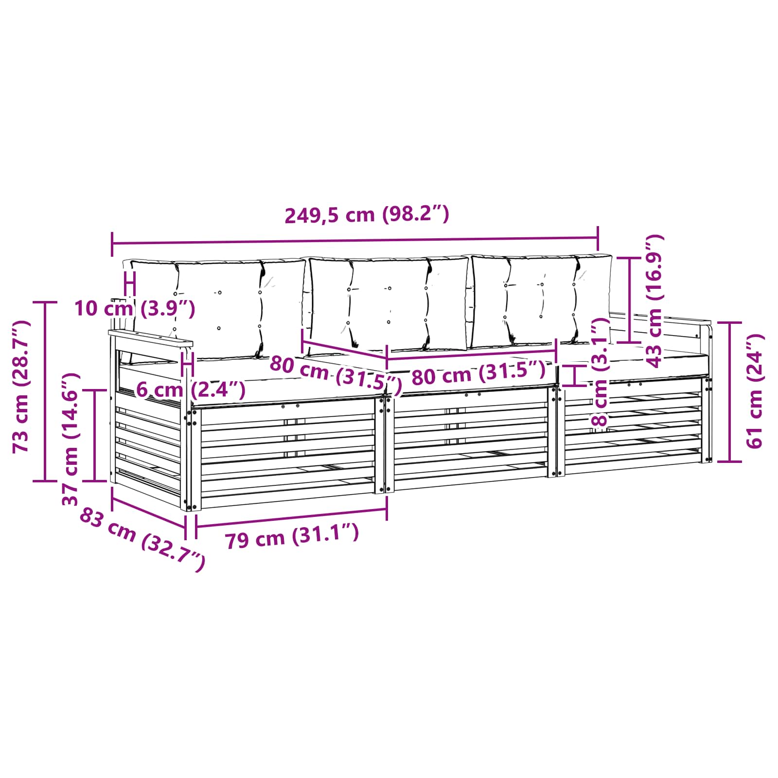 - 3 x Rückenpolster: 80 x 43 x 10 cm (LxBxH)
