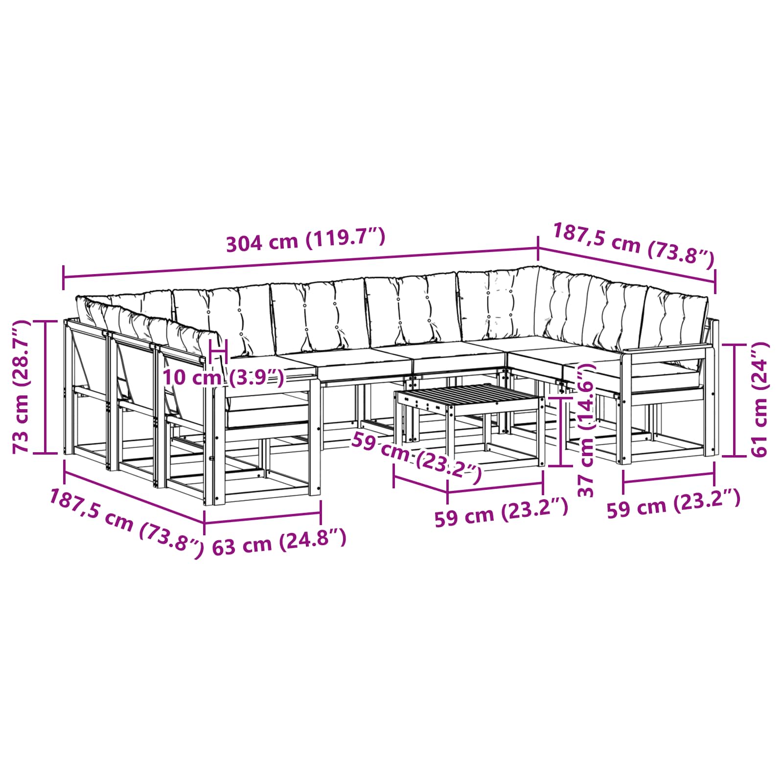 - 11 x Rückenkissen: 60 x 40 x 10 cm (LxBxH)