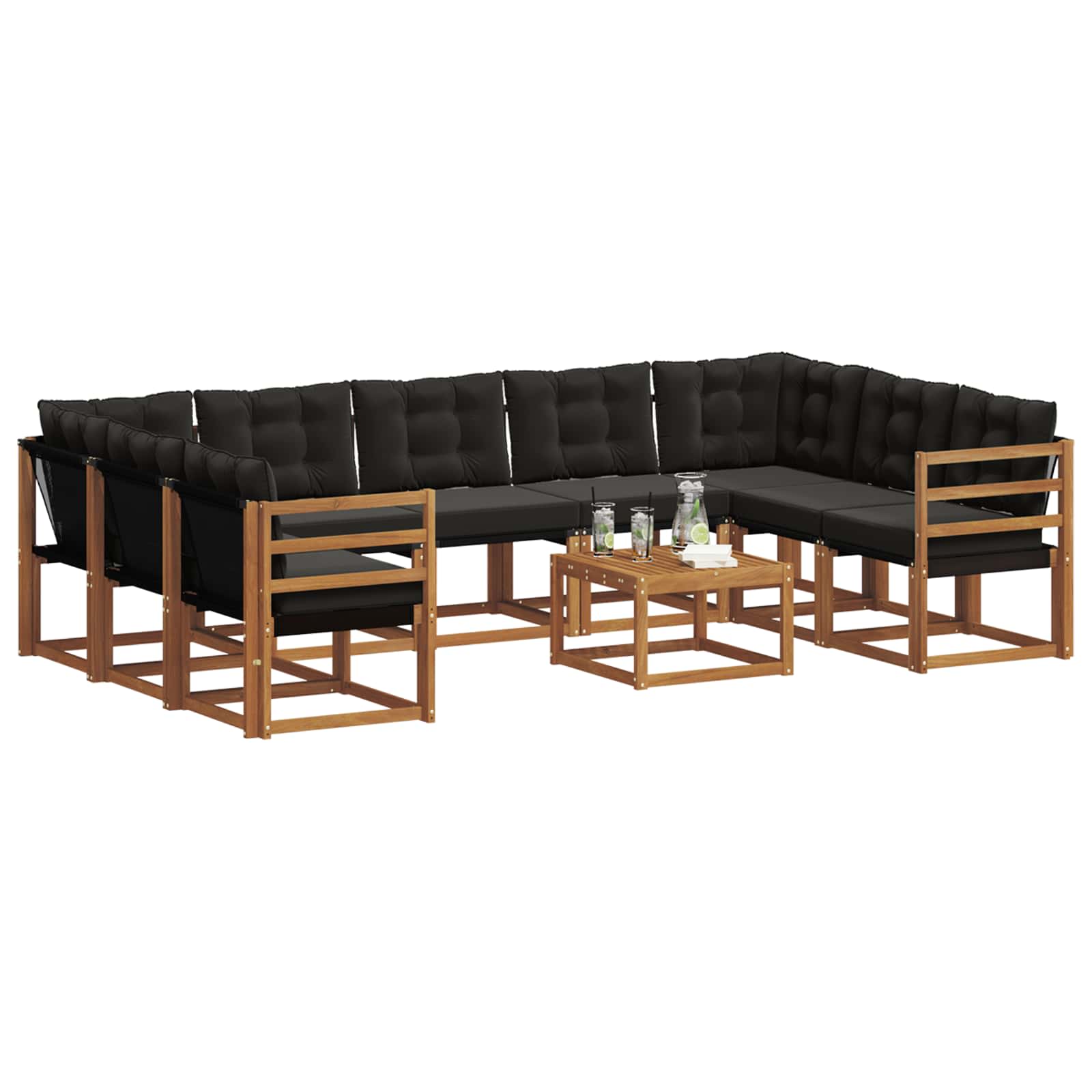 Das langlebige Outdoor-Sofa-Set ist eine fantastische Ergänzung für jeden Garten oder jede Terrasse. Es verbindet ästhetischen Charme mit robuster Funktionalität. Dieses moderne Sofa-Set wurde sorgfältig entworfen und passt ideal in deine Outdoor-Dekoration und wird zum Mittelpunkt für gesellige Zusammenkünfte. Die ansprechende Holzoptik und der dunkle Farbton machen es elegant und verwandeln jeden Raum in einen stilvollen Rückzugsort im Freien. Ob du Freunde einlädst oder einen ruhigen Moment allein genießen möchtest, dieses Sofa-Set bietet Komfort und Stil für jede Gelegenheit. Massivholz Akazie: Hergestellt aus hochwertigem, massivem Akazienholz, bietet dieses Sofa-Set natürliche Eleganz und sorgt für Langlebigkeit. Die schöne Farbe hebt seine visuelle Anziehungskraft hervor und bietet zeitlosen Charme sowie robusten Schutz gegen Witterungseinflüsse. Textilene Rückmaterial: Die Rückenlehnen aus Textilene garantieren bequeme Unterstützung und sind leicht zu pflegen. Dieses Material bietet Flexibilität und hohe Atmungsaktivität. Schaum gepolsterte Kissen: Die Sofakissen sind dick gepolstert, was für super gemütliches Sitzen sorgt. Sie sind mit outdoor-freundlichem Stoff bezogen, abnehmbar und leicht zu reinigen – perfekt für draußen. Zuverlässige Armlehnen: Praktische Armlehnen aus massivem Akazienholz bieten Halt und machen die Nutzung des Sofa-Sets noch angenehmer. Einfache Pflege: Wische einfach mit einem feuchten Tuch über die Oberfläche, um das Set in einwandfreiem Zustand zu halten. Diese minimalen Wartungsanforderungen sorgen dafür, dass dein Außenbereich immer einladend bleibt.