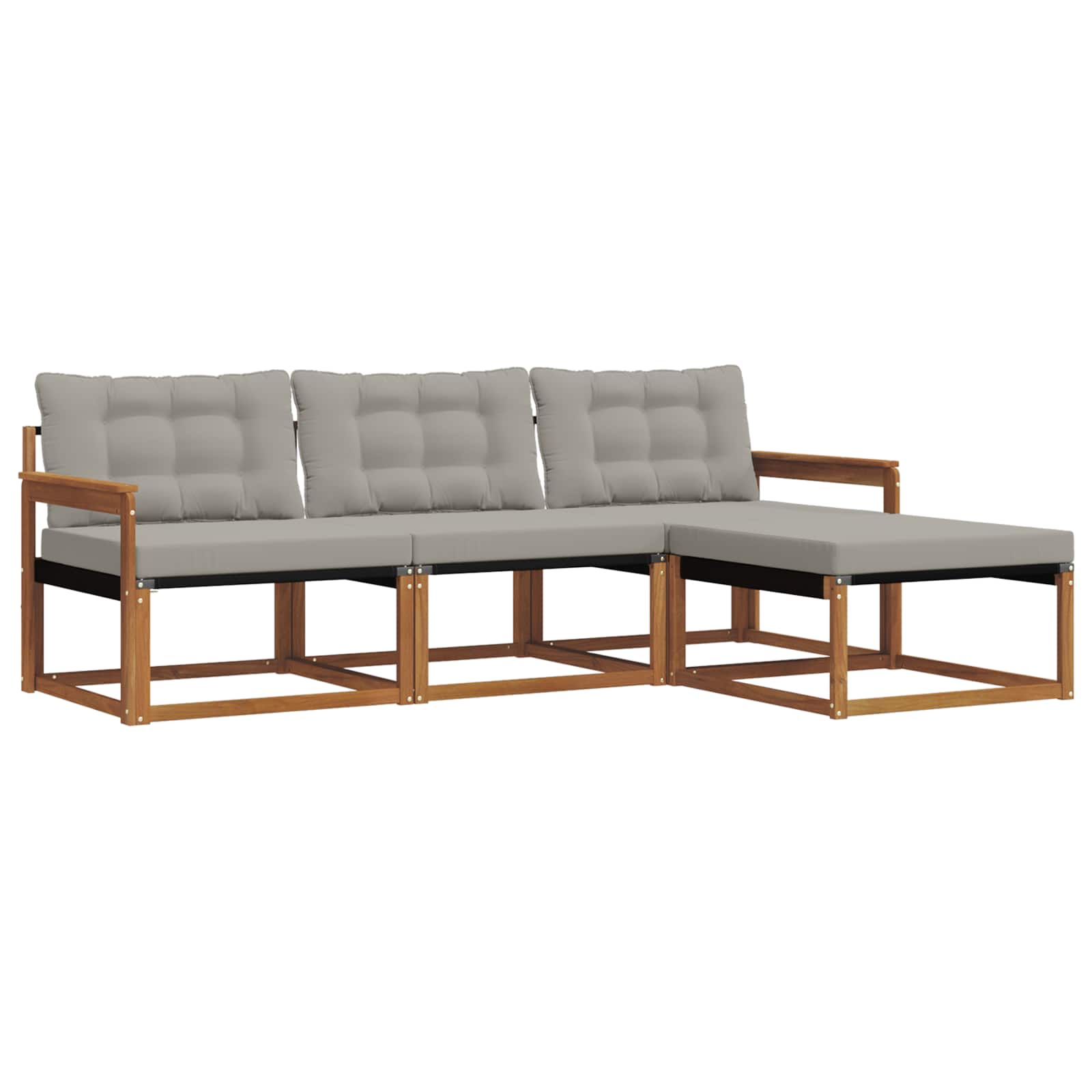 Das Gartenmöbel-Set vereint Stil und praktische Anwendung und wird zum Highlight für jeden Garten oder jede Terrasse. Das moderne Design mit klaren Linien und schlichten Details bringt Eleganz in den Outdoor-Bereich und sorgt für eine entspannte Atmosphäre beim Zusammensein. Voll aus massivem Akazienholz gefertigt, verspricht das Set Langlebigkeit sowie anhaltende visuelle Anziehungskraft. Die ideale Wahl für alle, die Praktikabilität und schickes Design in ihren Gartenmöbeln suchen. Langlebiges Massivholz Akazie: Hergestellt aus massivem Akazienholz, ist dieses Gartenmöbel-Set robust und hält den Bedingungen im Freien stand. Die starke Bauweise sorgt für Stabilität und Stil, während der natürliche Farbton jeden Garten oder jede Terrasse aufwertet. Wetterbeständig: Das Gartenmöbel-Set hat eine lackierte Oberfläche, die zusätzlichen Schutz gegen Sonne, leichten Regen und andere Witterungseinflüsse bietet. Das polierte Finish bewahrt sowohl das Aussehen als auch die Funktionalität und sorgt für lang anhaltende Haltbarkeit in deinem Garten, auf der Terrasse oder im Hinterhof. Design und Komponenten: Jedes Teil, von den Armlehnen bis zu den Rückenlehnen, ist stilvoll und funktional gestaltet. Unterstützende Elemente bieten zusätzlichen Komfort, während das harmonische Design für ein einladendes Gesamtbild sorgt, das sich für verschiedene Outdoor-Anlässe eignet. Komfort und Vielseitigkeit: Das modulare Design ermöglicht flexible Konfigurationen, die unterschiedlichen Bedürfnissen gerecht werden. Ideal zum Entspannen oder für gesellige Runden, passt sich das Set mühelos jeder Außenumgebung an und maximiert Komfort und Benutzerfreundlichkeit. Einfache Pflege: Um die Möbel in gutem Zustand zu halten, wische die Oberfläche einfach mit einem feuchten Tuch ab. Vermeide aggressive Reinigungsmittel. Mit regelmäßiger Pflege bleibt das Set in Topform und hat eine lange Lebensdauer.