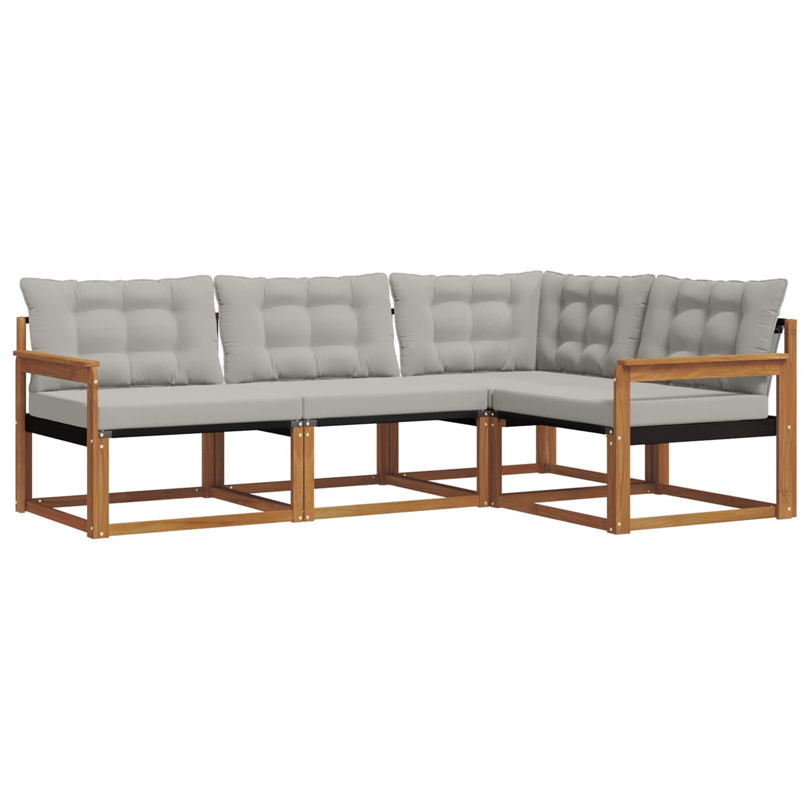 Das Outdoor-Möbelset vereint Stil und Funktion und wird zum tollen Blickfang für jeden Garten oder jede Terrasse. Mit modernem Design, klaren Linien und minimalistischen Details bringt es Eleganz und fördert die Entspannung im Freien sowie gesellige Zusammenkünfte. Vollständig aus solidem Akazienholz gefertigt, überzeugt das Set durch Langlebigkeit und nachhaltige Schönheit - also die perfekte Wahl für alle, die praktisches und stilvolles Design suchen. Robustes Akazienholz: Dieses Outdoor-Möbelset aus solidem Akazienholz ist bekannt für seine Langlebigkeit und Widerstandsfähigkeit gegenüber Witterungsbedingungen. Die stabile Bauweise bietet zuverlässige Unterstützung und hält deinem Garten oder deiner Terrasse viele Jahre stand. Wetterfestes Design: Mit einer lackierten Oberflächenbehandlung erhält dieses Set einen zusätzlichen Schutz gegen Sonne, leichtem Regen und andere Witterungseinflüsse. Das polierte Finish sorgt dafür, dass die Möbel sowohl optisch als auch funktional eine lange Lebensdauer haben. Stil & Funktion: Jedes Teil, von den Armlehnen bis zu den Rückenlehnen, wurde für Komfort und Stil entwickelt. Unterstützende Elemente garantieren ein angenehmes Sitzen, während das durchdachte Design ein stimmiges Gesamtbild für unterschiedliche Anlässe im Freien schafft. Komfort & Flexibilität: Dank des modularen Designs kannst du die Sitzanordnung flexibel gestalten, sodass es für jeden Raum und jedes Bedürfnis passt. Ideal zum Entspannen, für gesellige Runden oder als ruhiger Leseplatz - dieses Set fügt sich mühelos in jede Außenumgebung ein. Einfache Pflege: Damit die Möbel in Topform bleiben, einfach die Oberfläche mit einem feuchten Tuch abwischen und starke Reinigungsmittel vermeiden. Regelmäßige Pflege hält die Möbel schön und verlängert deren Lebensdauer.