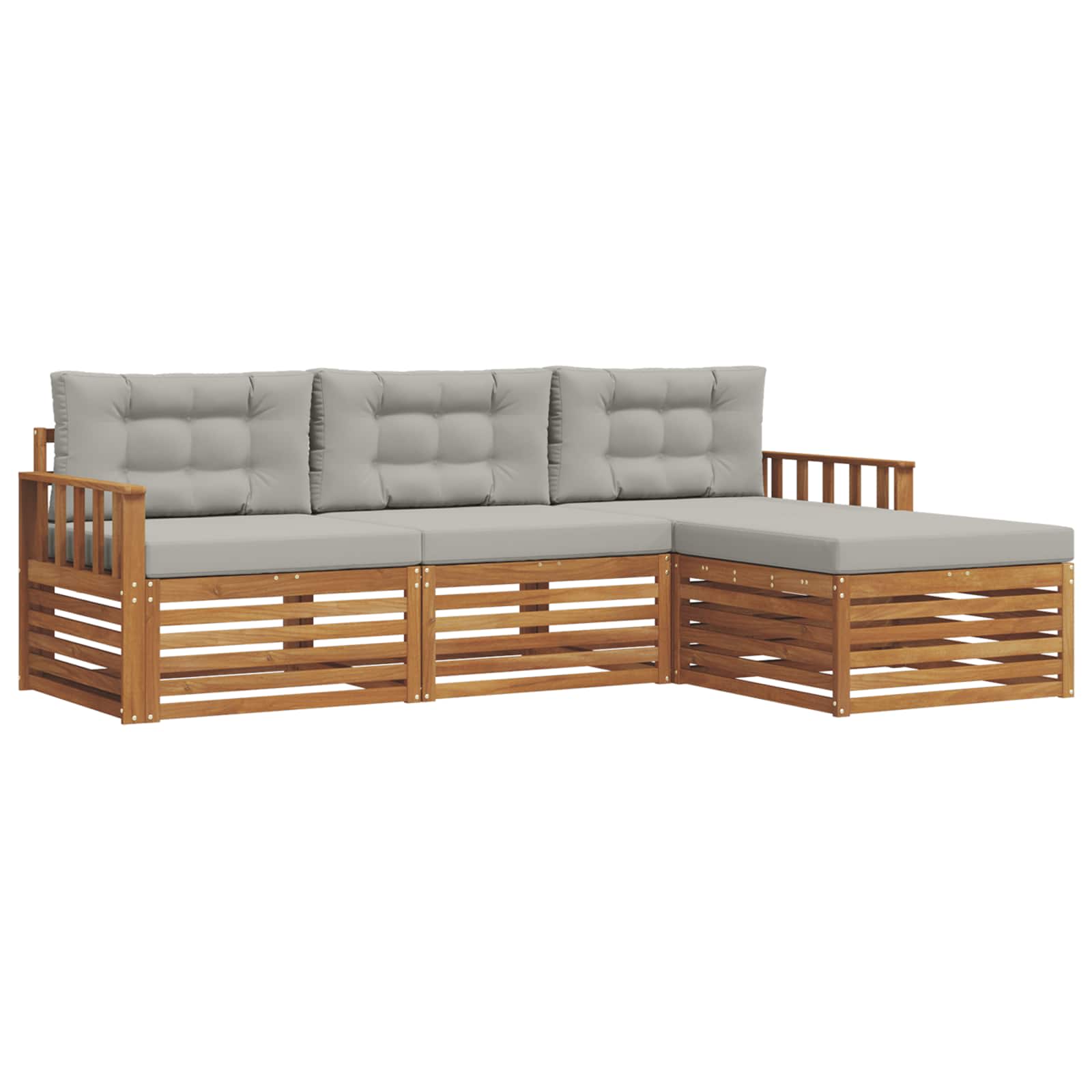 Das Outdoor-Möbelset bringt Stil und Funktionalität zusammen und ist das Herzstück für jeden Garten oder jede Terrasse. Mit seinem modernen Design und den klaren Linien wirkt es elegant und ermöglicht gemütliche Stunden im Freien. Hergestellt aus solidem Akazienholz, bietet das Set nicht nur Langlebigkeit, sondern bleibt auch optisch ansprechend. Ideal für alle, die praktische und schicke Möbel für den Außenbereich suchen. Langlebiges Massivholz Akazie: Dieses Set aus solidem Akazienholz ist extrem langlebig und wetterfest. Es bietet zuverlässige Unterstützung und bleibt über lange Zeit stabil, während der warme Farbton deinem Garten oder deiner Terrasse eine besondere Note verleiht. Wetterfeste Bauweise: Mit einer lackierten Oberfläche schützt dieses Outdoor-Möbelset gegen Sonne, leichten Regen und andere Einflüsse. Das polierte Finish hilft, das Aussehen und die Funktionalität lange zu bewahren. Komponenten & Design: Jedes Teil, von den Armlehnen bis zu den Rückenlehnen, ist stilvoll und praktisch. Komfortmerkmale machen das Sitzen noch angenehmer, und das durchdachte Design sorgt für ein harmonisches Gesamtbild. Komfort & Vielseitigkeit: Dank des modularen Designs kannst du das Set flexibel konfigurieren, um deinen Bedürfnissen gerecht zu werden. Egal, ob du relaxen, Gäste empfangen oder lesen möchtest – dieses Set passt sich deiner Umgebung perfekt an. Einfache Pflege & Wartung: Halte die Möbel in Top-Zustand, indem du einfach mit einem feuchten Tuch drüber wischst und aggressive Reiniger vermeidest. So bleibt nicht nur das Aussehen, sondern auch die Lebensdauer erhalten.