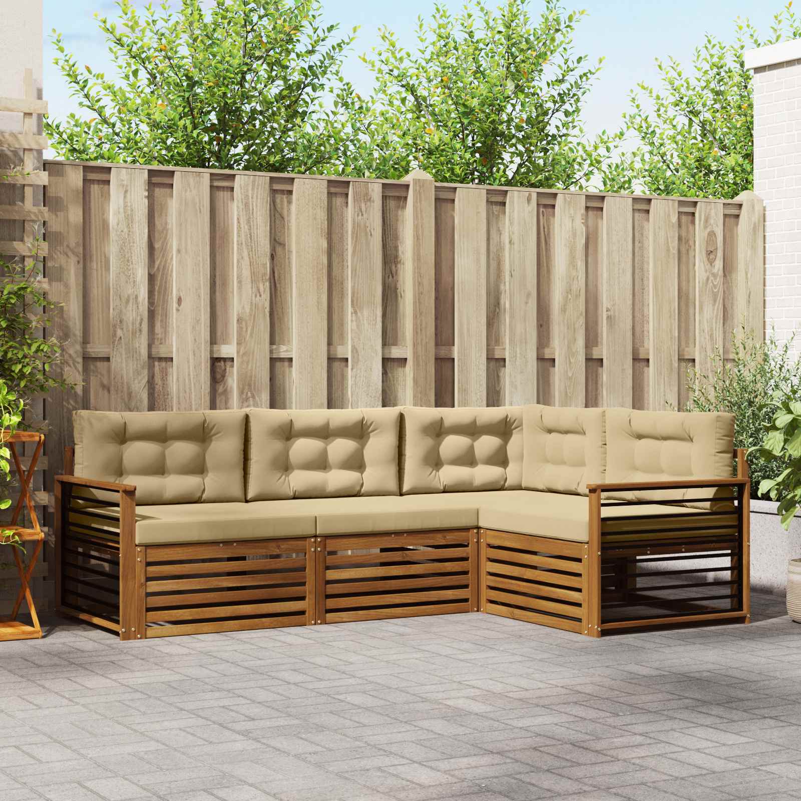 Das Outdoor-Möbelset kombiniert Stil und Funktionalität und wird zum coolen Blickfang in jedem Garten oder auf jeder Terrasse. Mit modernen Linien und minimalistischem Design bringt es eine elegante Note mit und fördert entspannte Treffen oder gemütliche Abende im Freien. Das Set aus massivem Akazienholz ist langlebig und bleibt auch nach längerem Gebrauch ansprechend – die ideale Wahl für alle, die praktische und schicke Gartenmöbel suchen. Hochwertiges Massivholz Akazie: Dieses Outdoor-Möbelset ist aus massivem Akazienholz gefertigt und bekannt für seine Langlebigkeit und Wetterbeständigkeit. Die robuste Bauweise sorgt für besten Halt und stabilen Sitz, während die natürliche Farbe deinen Garten oder die Terrasse aufpeppt. Wetterfeste Ausführung: Das Möbelset hat eine lackierte Oberfläche, die zusätzlichen Schutz gegen Sonne, leichten Regen und andere Wetterbedingungen bietet. Der Glanz bleibt erhalten, sodass es lange schön aussieht und dir Freude im Garten, auf der Terrasse oder im Hinterhof bereitet. Komponenten & Design: Jedes Teil, von den Armlehnen bis zu den Rückenlehnen, ist durchdacht gestaltet. Die unterstützenden Details sorgen für mehr Komfort, während das harmonische Design ein cooles Gesamtbild für verschiedene Outdoor-Anlässe schafft. Komfort & Vielseitigkeit: Das modulare Design ermöglicht flexible Aufstellungen, die sich an deine Bedürfnisse und den Raum anpassen. Ideal zum Relaxen, für gesellige Runden oder ruhige Lese-Stunden – dieses Set passt sich perfekt an und sorgt für maximalen Komfort. Einfache Pflege & Wartung: Halte die Möbel in Topform, indem du die Oberfläche einfach mit einem feuchten Tuch abwischst. Vermeide starke oder scheuernde Reiniger. Regelmäßige Pflege sorgt dafür, dass das gute Aussehen bleibt und die Möbel lange halten.