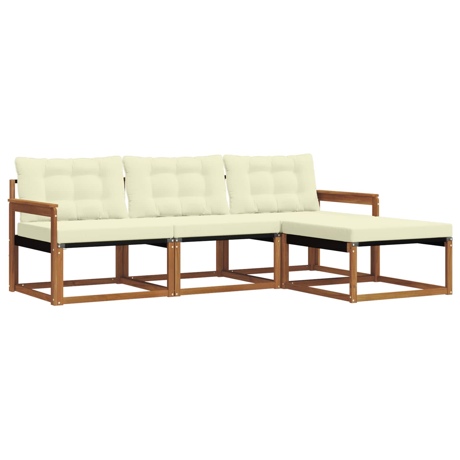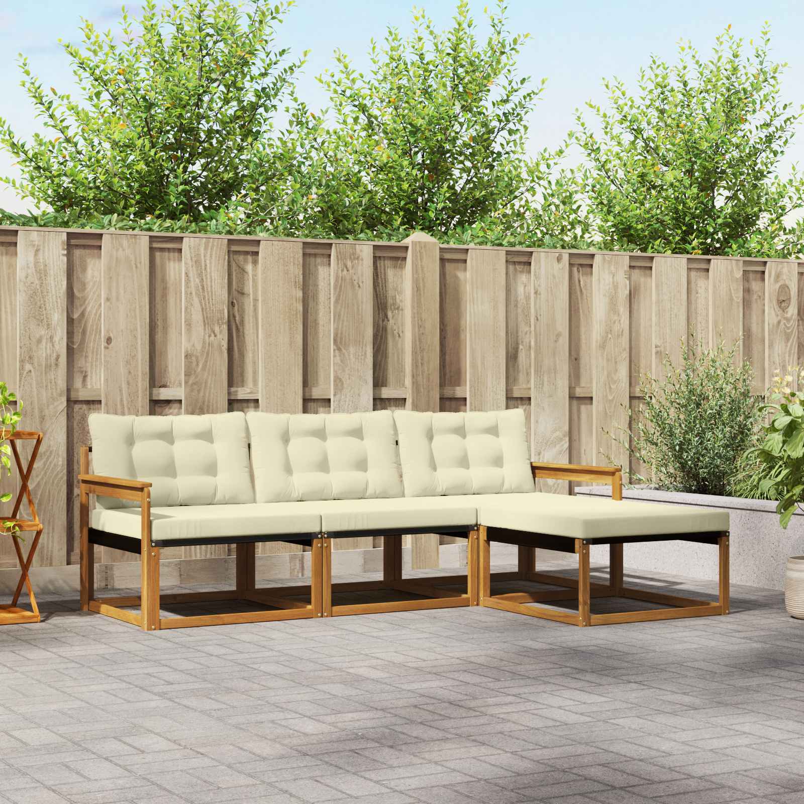 Das Gartenmöbel-Set vereint Stil und praktische Anwendung und wird zum Highlight für jeden Garten oder jede Terrasse. Das moderne Design mit klaren Linien und schlichten Details bringt Eleganz in den Outdoor-Bereich und sorgt für eine entspannte Atmosphäre beim Zusammensein. Voll aus massivem Akazienholz gefertigt, verspricht das Set Langlebigkeit sowie anhaltende visuelle Anziehungskraft. Die ideale Wahl für alle, die Praktikabilität und schickes Design in ihren Gartenmöbeln suchen. Langlebiges Massivholz Akazie: Hergestellt aus massivem Akazienholz, ist dieses Gartenmöbel-Set robust und hält den Bedingungen im Freien stand. Die starke Bauweise sorgt für Stabilität und Stil, während der natürliche Farbton jeden Garten oder jede Terrasse aufwertet. Wetterbeständig: Das Gartenmöbel-Set hat eine lackierte Oberfläche, die zusätzlichen Schutz gegen Sonne, leichten Regen und andere Witterungseinflüsse bietet. Das polierte Finish bewahrt sowohl das Aussehen als auch die Funktionalität und sorgt für lang anhaltende Haltbarkeit in deinem Garten, auf der Terrasse oder im Hinterhof. Design und Komponenten: Jedes Teil, von den Armlehnen bis zu den Rückenlehnen, ist stilvoll und funktional gestaltet. Unterstützende Elemente bieten zusätzlichen Komfort, während das harmonische Design für ein einladendes Gesamtbild sorgt, das sich für verschiedene Outdoor-Anlässe eignet. Komfort und Vielseitigkeit: Das modulare Design ermöglicht flexible Konfigurationen, die unterschiedlichen Bedürfnissen gerecht werden. Ideal zum Entspannen oder für gesellige Runden, passt sich das Set mühelos jeder Außenumgebung an und maximiert Komfort und Benutzerfreundlichkeit. Einfache Pflege: Um die Möbel in gutem Zustand zu halten, wische die Oberfläche einfach mit einem feuchten Tuch ab. Vermeide aggressive Reinigungsmittel. Mit regelmäßiger Pflege bleibt das Set in Topform und hat eine lange Lebensdauer.