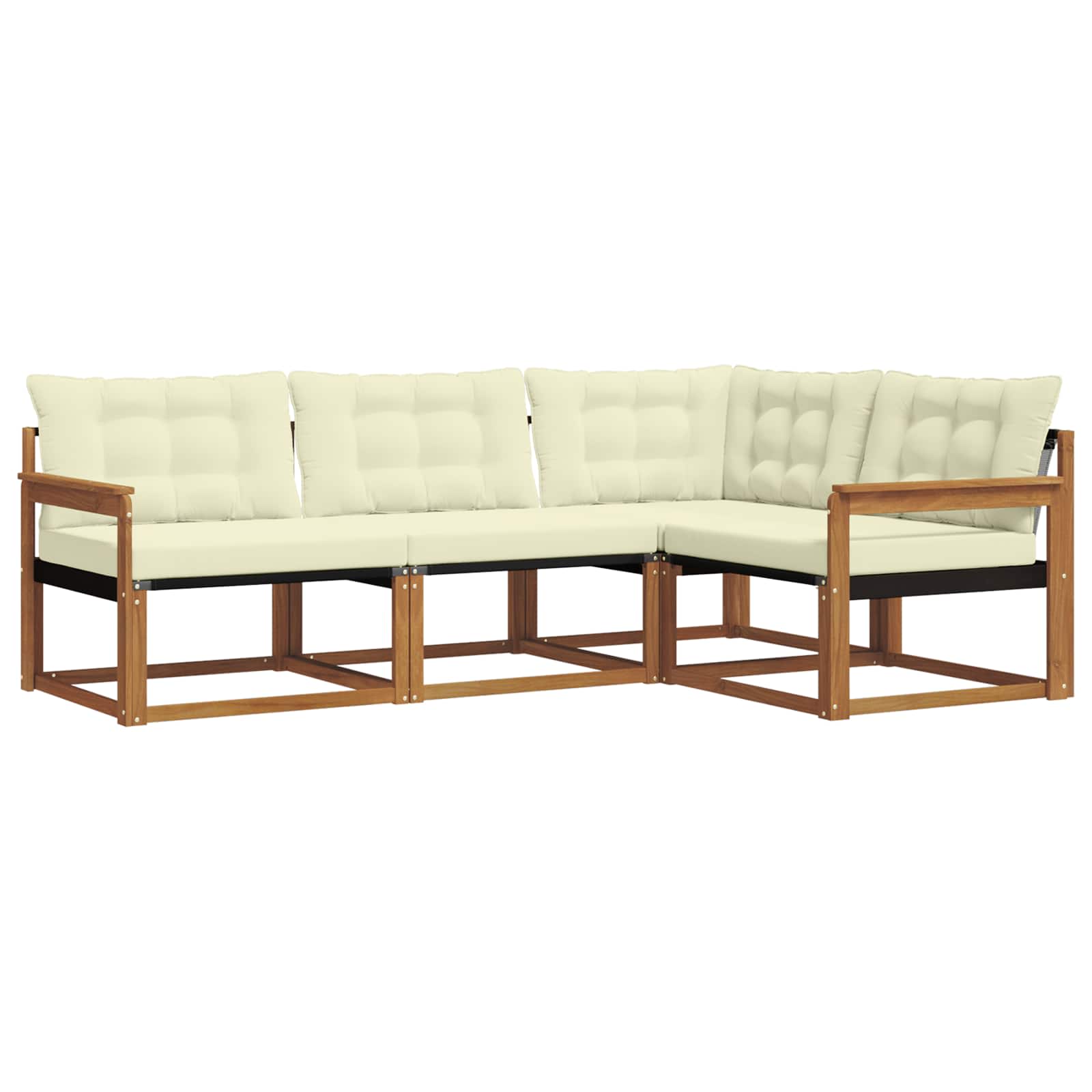 Das Outdoor-Möbelset vereint Stil und Funktion und wird zum tollen Blickfang für jeden Garten oder jede Terrasse. Mit modernem Design, klaren Linien und minimalistischen Details bringt es Eleganz und fördert die Entspannung im Freien sowie gesellige Zusammenkünfte. Vollständig aus solidem Akazienholz gefertigt, überzeugt das Set durch Langlebigkeit und nachhaltige Schönheit - also die perfekte Wahl für alle, die praktisches und stilvolles Design suchen. Robustes Akazienholz: Dieses Outdoor-Möbelset aus solidem Akazienholz ist bekannt für seine Langlebigkeit und Widerstandsfähigkeit gegenüber Witterungsbedingungen. Die stabile Bauweise bietet zuverlässige Unterstützung und hält deinem Garten oder deiner Terrasse viele Jahre stand. Wetterfestes Design: Mit einer lackierten Oberflächenbehandlung erhält dieses Set einen zusätzlichen Schutz gegen Sonne, leichtem Regen und andere Witterungseinflüsse. Das polierte Finish sorgt dafür, dass die Möbel sowohl optisch als auch funktional eine lange Lebensdauer haben. Stil & Funktion: Jedes Teil, von den Armlehnen bis zu den Rückenlehnen, wurde für Komfort und Stil entwickelt. Unterstützende Elemente garantieren ein angenehmes Sitzen, während das durchdachte Design ein stimmiges Gesamtbild für unterschiedliche Anlässe im Freien schafft. Komfort & Flexibilität: Dank des modularen Designs kannst du die Sitzanordnung flexibel gestalten, sodass es für jeden Raum und jedes Bedürfnis passt. Ideal zum Entspannen, für gesellige Runden oder als ruhiger Leseplatz - dieses Set fügt sich mühelos in jede Außenumgebung ein. Einfache Pflege: Damit die Möbel in Topform bleiben, einfach die Oberfläche mit einem feuchten Tuch abwischen und starke Reinigungsmittel vermeiden. Regelmäßige Pflege hält die Möbel schön und verlängert deren Lebensdauer.