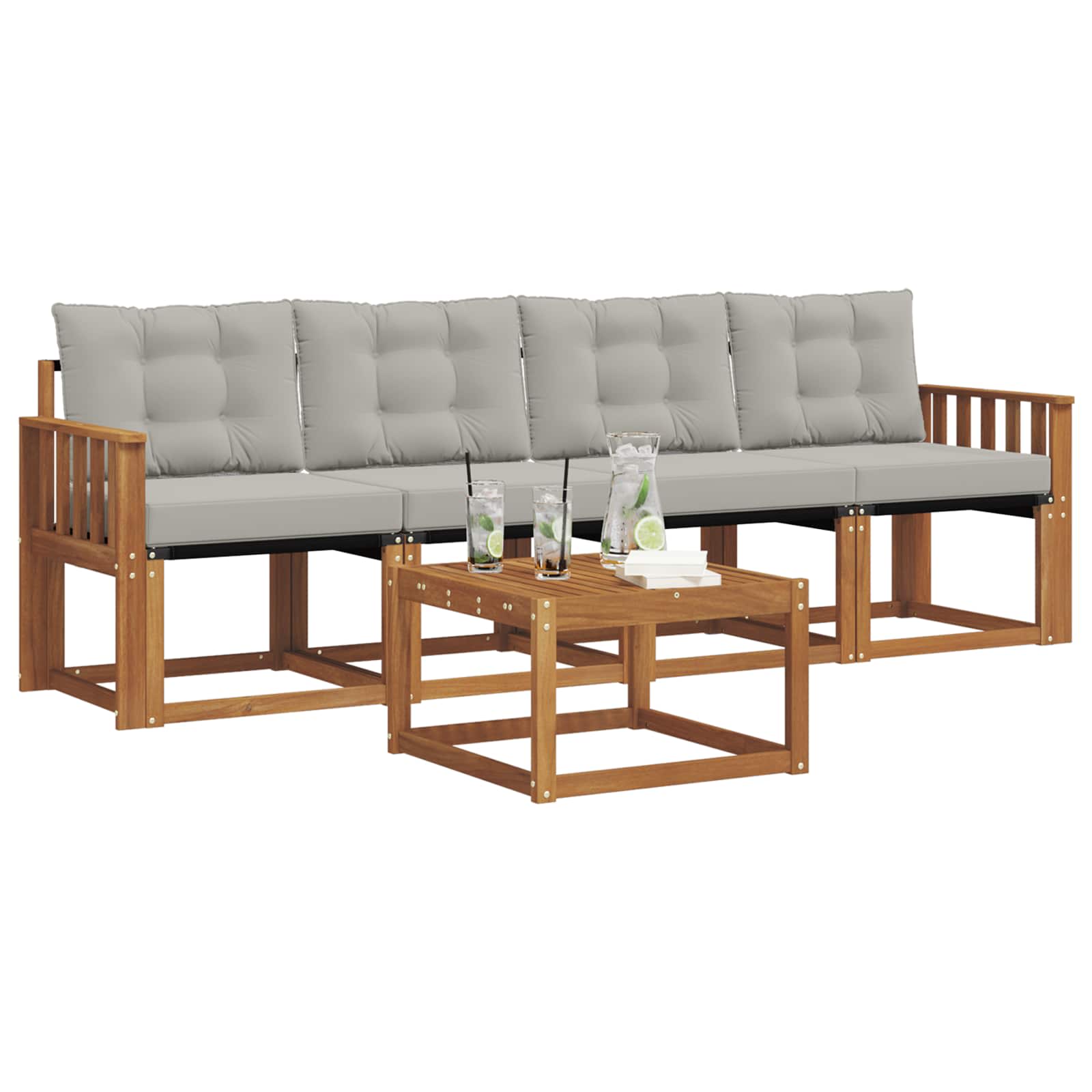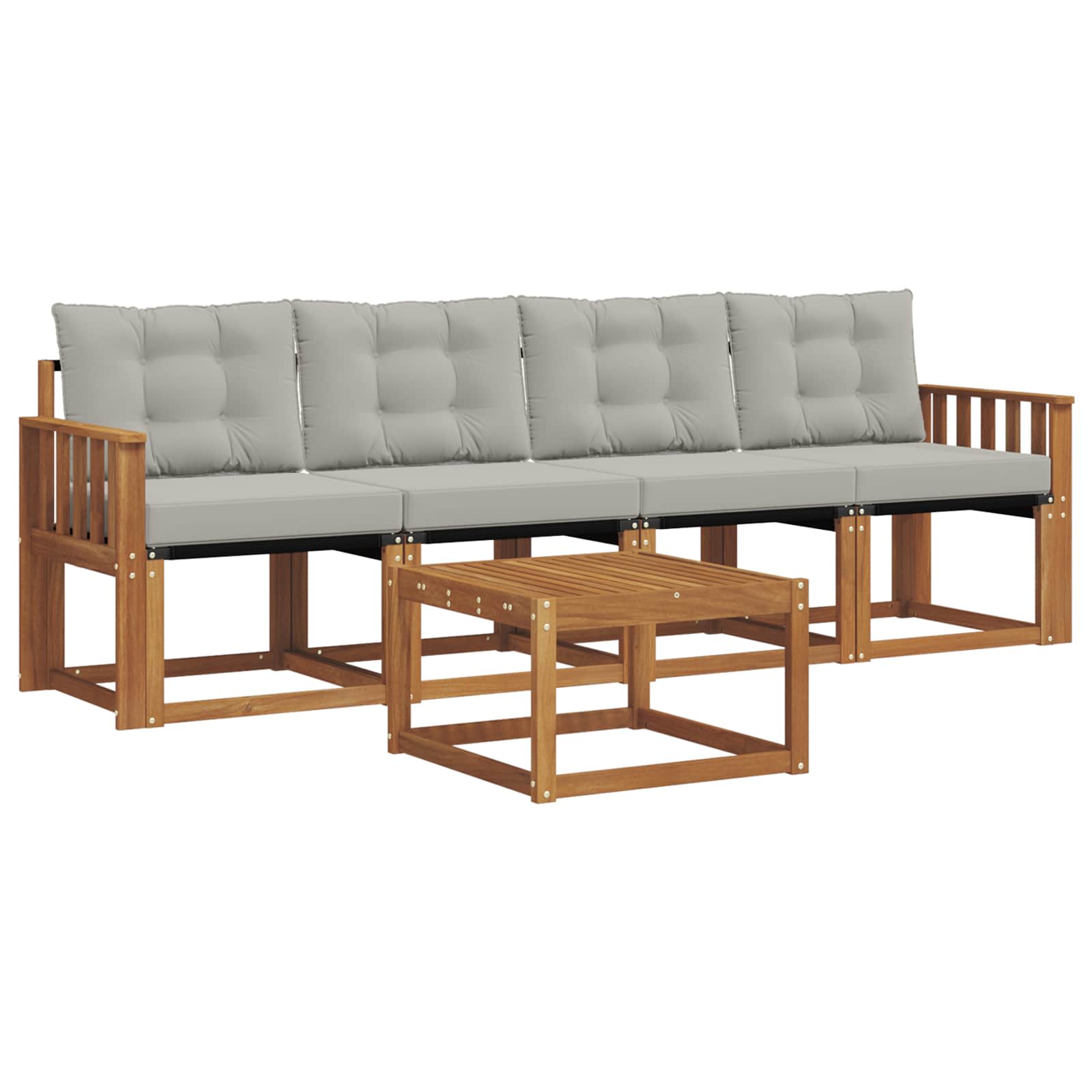 Dieses Gartenmöbelset vereint lässigen Stil und praktische Funktionen. Es ist der Hingucker in deinem Garten oder auf der Terrasse! Mit seinem modernen Look und den klaren Linien strahlt es Eleganz aus und lädt zum Relaxen und geselligen Beisammensein ein. Aus massivem Akazienholz gefertigt, ist das Set robust und bleibt über die Jahre schön – perfekt, wenn du sowohl Praktikabilität als auch Design suchst! Langlebiges Massiv-Akazienholz: Dieses Gartenmöbelset ist echt stabil und hält Wind und Wetter stand. Das warme Holz sieht nicht nur toll aus, sondern sorgt auch für einen stabilen Halt. Wetterbeständiges Design: Die lackierte Oberfläche schützt vor Sonne und leichten Regenschauern. So behält das Set sein tolles Aussehen und die Funktionalität bleibt auch nach Jahren erhalten. Komponenten & Design: Jedes Teil ist stylisch und praktisch. Es bietet besten Sitzkomfort und sorgt dafür, dass deine Outdoor-Events immer gut ankommen. Komfort & Vielseitigkeit: Das modulare Design lässt viele Anordnungen zu, perfekt für Entspannung oder gesellige Runden. Es fügt sich problemlos in jeden Außenbereich ein. Einfache Pflege & Wartung: Halte die Möbel mit einem nassen Tuch sauber, und verwende keine harten Reinigungsmittel. So bleibt alles frisch und schön!