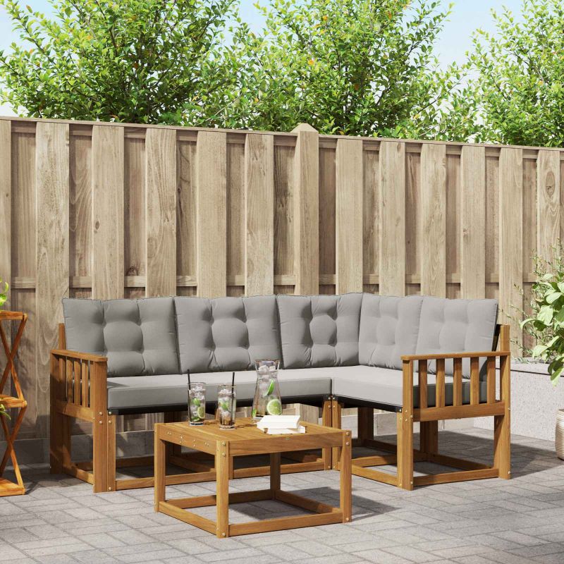 Dieses moderne Sofaset bringt frischen Wind und wertet jeden Außenbereich mühelos auf. Es eignet sich super für Garten-, Terrassen-, Hinterhof- oder Poolbereiche und sein schlichtes Design überzeugt mit Einfachheit und Funktionalität. Die klaren Linien und die minimalistische Gestaltung schaffen ein harmonisches Gleichgewicht zwischen Komfort und Stil. Genieß den Charme für den Ausblick im Freien mit einem Set, das nicht nur gut aussieht, sondern auch eine gemütliche Rückzugsmöglichkeit bietet. Materialien: Aus massivem Akazienholz für Rahmen und Tischplatte, die langlebige Qualität macht sie wetterfest. Zusammen mit der Textilene-Sitzfläche bekommst du eine schicke Textur, die das Verblassen übersteht und angenehm ist. Enthaltene Komponenten: Das Set hat abnehmbare Outdoor-Kissen mit Reißverschlüssen. Diese Teile sorgen für viel Komfort und erleichtern die Pflege, sodass sie immer gut aussehen. Funktionen/Funktion/Design: Genieß die praktische Tischplatte mit Rillen, die für guten Wasserablauf nach Regen sorgt. Die dick gepolsterten Kissen ergänzen die Rückenlehne und bieten dir luxuriösen Komfort beim Entspannen oder Nachdenken. Empfohlene Verwendung: Dieses vielseitige Set ist perfekt für draußen, sei es auf Terrassen oder in Gärten. Es schafft eine einladende Atmosphäre für Gäste oder ruhige Momente alleine. Dank seiner Flexibilität eignet es sich für viele Aktivitäten im Freien. Pflege und Wartung: Es ist echt easy in der Pflege. Wisch einfach mit einem feuchten Tuch drüber, um es zu reinigen. Die wetterfesten Kissen bleiben frisch und schick, damit du über die Jahreszeiten hinweg stilvoll entspannen kannst.