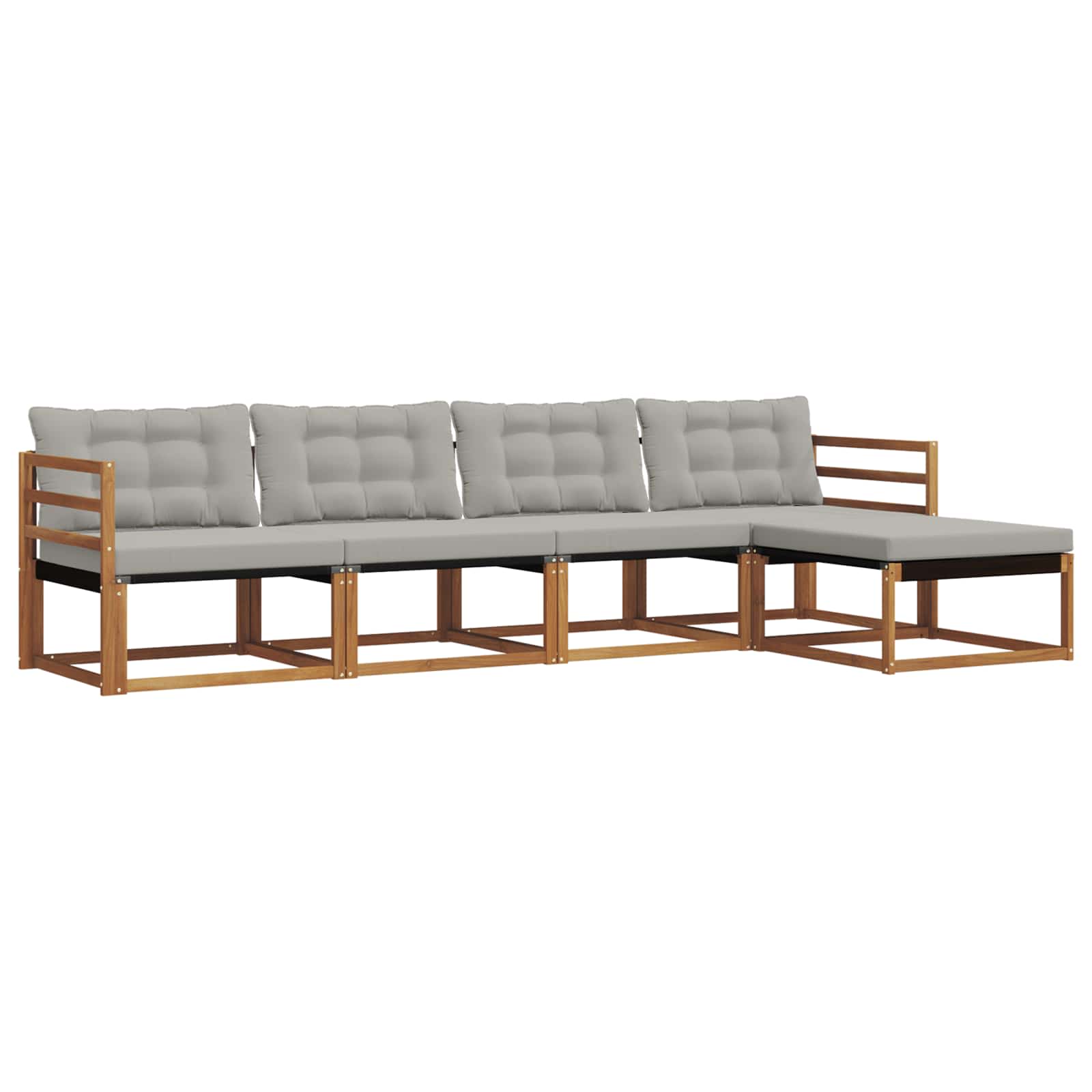 Das Outdoor-Möbelset verbindet coolen Style mit praktischer Funktionalität und ist ein echter Blickfang für jeden Garten oder jede Terrasse. Mit seinem modernen Design, klaren Linien und minimalen Details bringt es Eleganz und läd gleichzeitig zum Entspannen im Freien oder geselligen Treffen ein. Aus solidem Akazienholz gefertigt, sorgt das Set für Langlebigkeit und bleibt optisch ansprechend, also perfekt für alle, die Praktikabilität und schickes Design im Outdoor-Mobiliar wollen. Robustes massives akazienholz: Dieses Outdoor-Möbelset ist aus solidem Akazienholz, bekannt für Langlebigkeit und Wetterbeständigkeit. Der stabile Aufbau bietet zuverlassige Stütze und langfristige Stabilität, während die warmen Naturtöne jeden Garten- oder Terrassenbereich aufpeppen. Wetterfestes Design: Mit einer lackierten Oberfläche, die Schutz gegen Sonne, leichten Regen und äußere Einflüsse bietet, bleibt das Set lange schön. Die polierte Oberfläche ist praktisch und sorgt für eine langanhaltende Haltbarkeit im Garten, auf der Terrasse oder im Hinterhof. Design und Komponenten: Jedes Teil wurde stylisch und praktisch entworfen. Der Unterbau sorgt für extra Komfort, während das harmonische Design ein tolles Gesamtbild schafft, das für viele Outdoor-Anlässe passt. Komfort & Flexibilität: Das modulare Design erlaubt dir, verschiedene Konfigurationen je nach Bedürfnis zu gestalten. Ob für Entspannung, gesellige Abende oder ruhige Lesestunden – dieses Set passt sich problemlos all deinen Outdoor-Umgebungen an und maximiert den Komfort. Einfache Pflege: Um die Möbel in Schuss zu halten, einfach mit einem feuchten Tuch abwischen und auf scharfe Reiniger verzichten. Regelmäßige Pflege hilft dir, das schöne Aussehen zu bewahren und die Lebenszeit der Möbel zu verlängern.