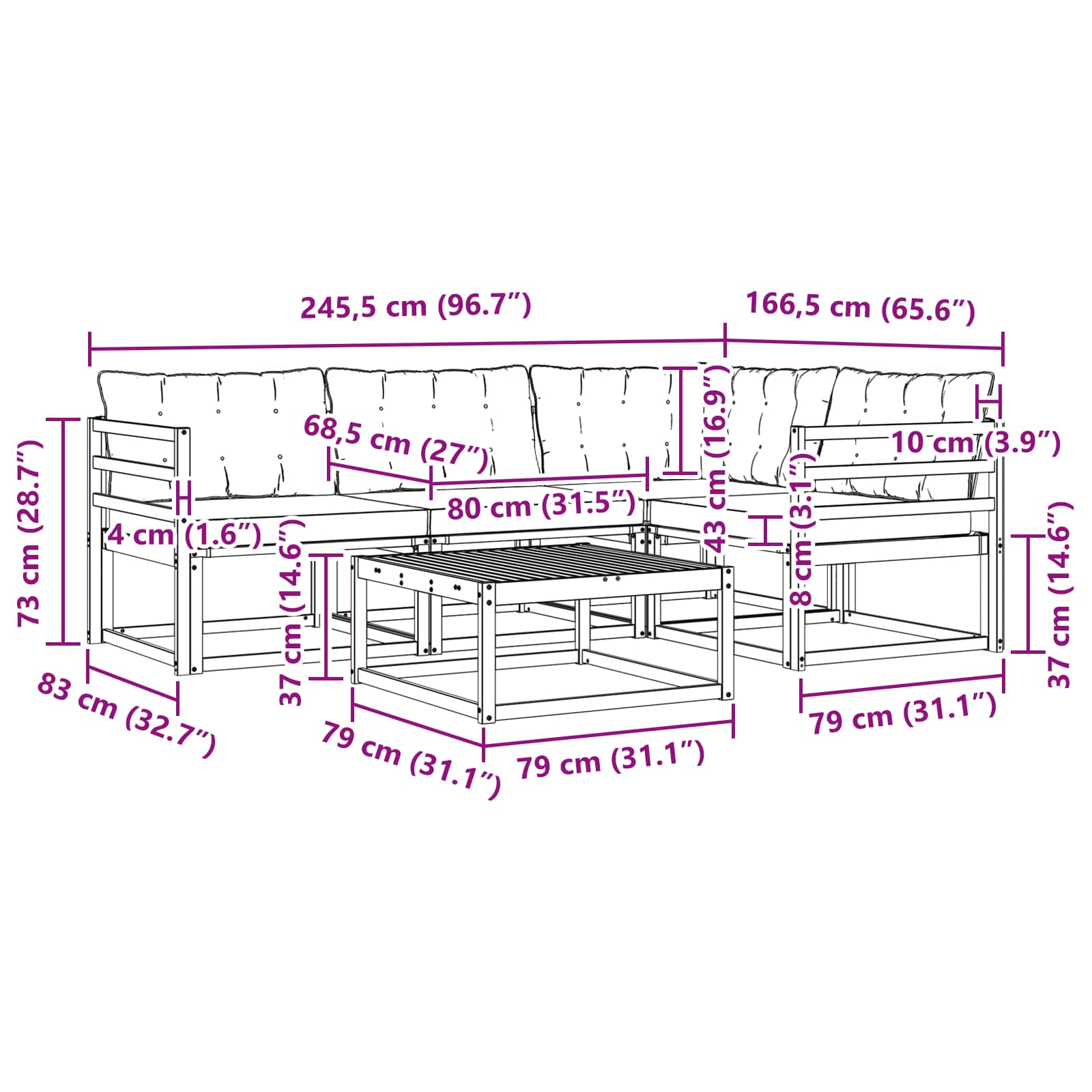 - 5 x Rückenkissen: 80 x 43 x 10 cm (LxWxH)