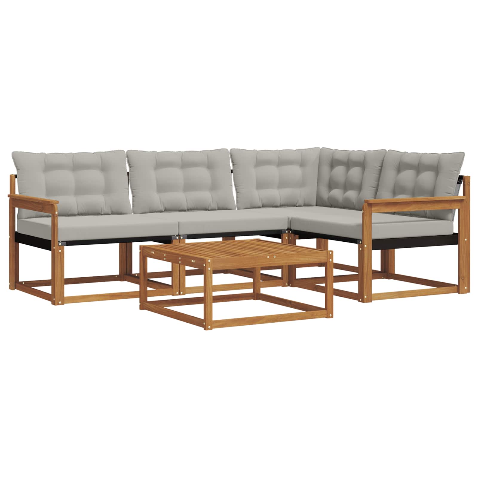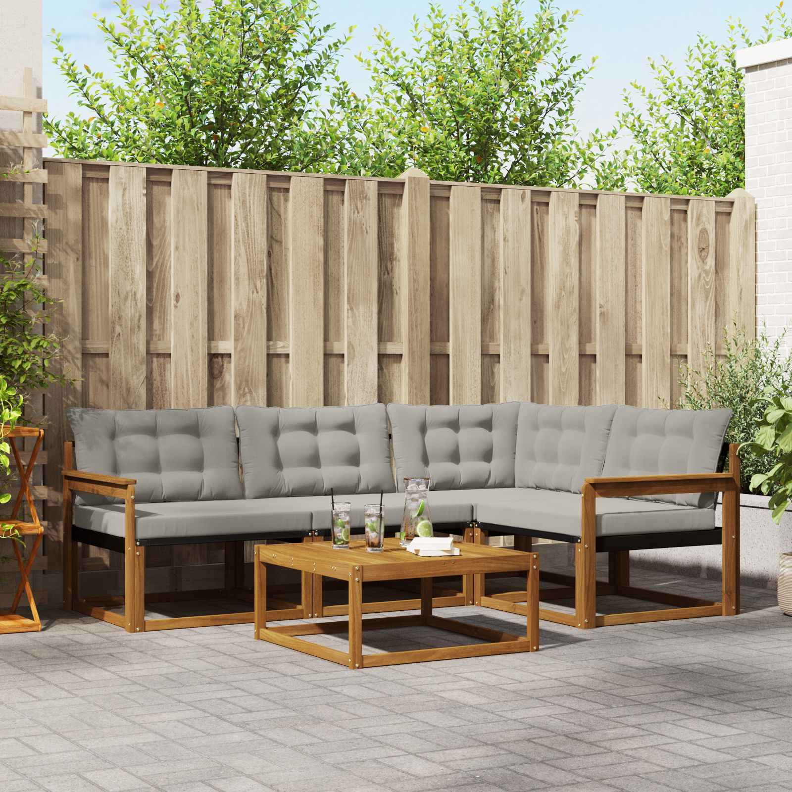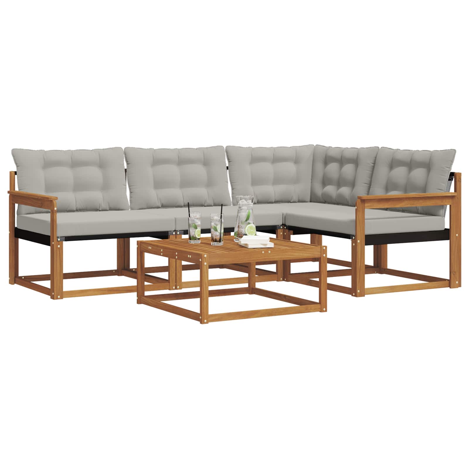 Dieses schicke Sofaset ist die perfekte Ergänzung für deinen Außenbereich, denn es bietet stilvolles Design und gute Funktionalität. Das moderne Design überzeugt mit klaren Linien und einem stabilen Rahmen, der jedem Garten oder jeder Terrasse gerecht wird. Ob für Feste oder entspannte Momente – du profitierst von bequemen Sitzen und einem schönen Blickfang. Massivholz Akazienrahmen: Das Sofaset hat einen stabilen Rahmen aus massivem Akazienholz, das für Robustheit und natürliche Schönheit steht. Der warme Farbton wirkt einladend und sorgt für Langlebigkeit im Alltag. Textilene Komfort: Die Kissen und Rückenlehnen aus Textilene bieten atmungsaktiven Komfort und sind gegen Verblassen sowie Abnutzung beständig. Diese kluge Materialwahl sorgt für besten Sitzkomfort und ein frisches Aussehen – ideal für Outdoor-Spaß. Modulare Flexibilität: Das modulare Design des Sofas macht es leicht, verschiedene Sitzkonfigurationen zu wählen. Du kannst die Teile umstellen, um die perfekte Anordnung für Veranstaltungen zu schaffen, egal ob für kleine oder große Gruppen. Wetterfeste Komponenten: Mit wetterbeständigen Kissen und Materialien für den Außenbereich widersteht dieses Set Feuchtigkeit und UV-Strahlen, sodass die Farben über die Zeit leuchtend bleiben. Jedes Element ist darauf ausgelegt, den Witterungseinflüssen standzuhalten. Einfache Pflege: Es braucht kaum Pflege und kann problemlos mit einem feuchten Tuch gereinigt werden, um sein attraktives Aussehen zu erhalten. Damit hast du einen stets einladenden Platz zum Sitzen.