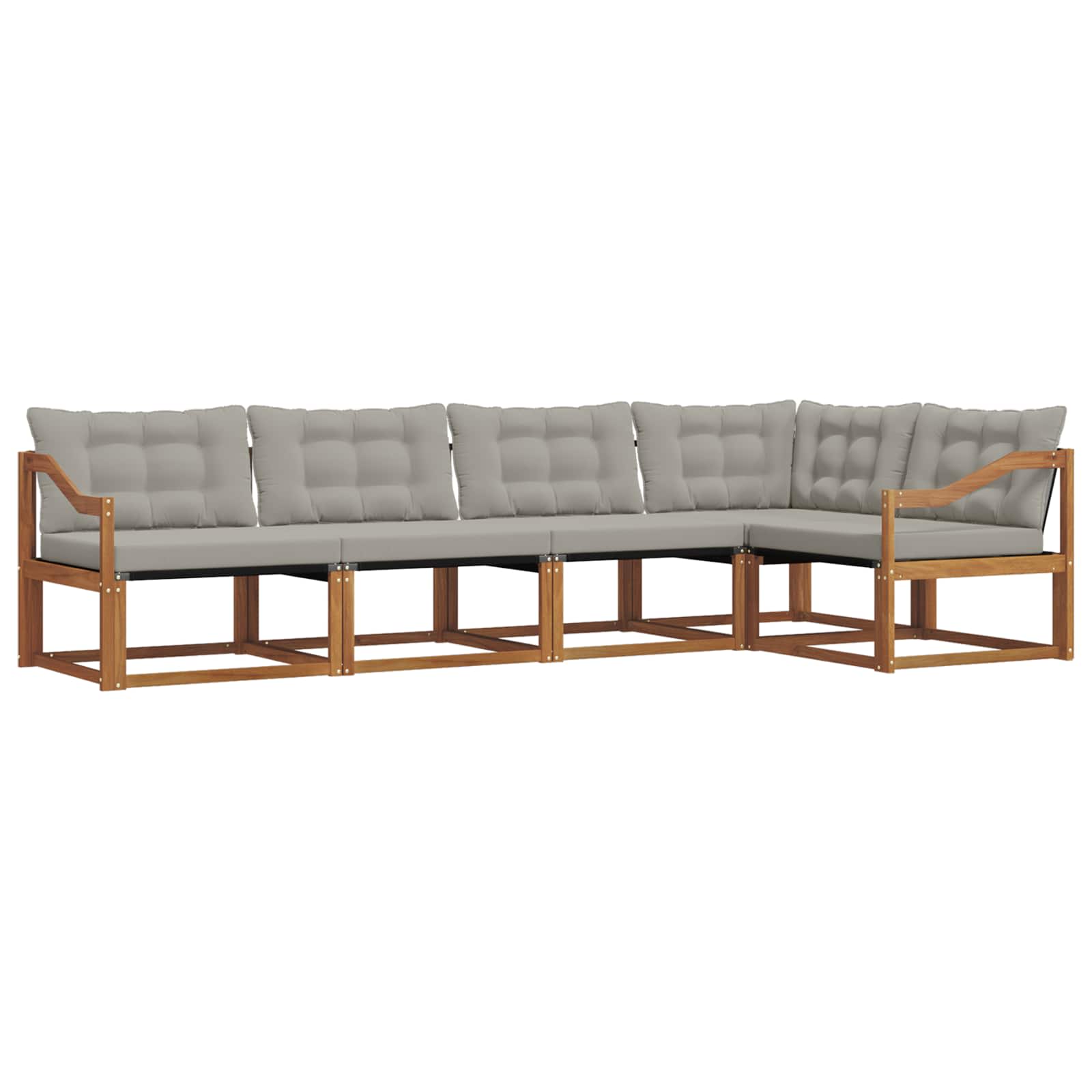 Dieses moderne Sofa-Set bringt Entspannung nach draußen mit seinem schicken Design und dem unvergleichlichen Komfort. Es passt perfekt in Garten und auf die Terrasse und setzt mit seinen klaren Linien und der schönen Holzmaserung Akzente. Egal ob für Partys oder ruhige Abende – die Kombination aus hochwertigen Materialien und Handwerkskunst gibt dir sowohl Langlebigkeit als auch schönen Look. Hochwertige Materialien: Hergestellt aus massivem Akazienholz, strahlt dieses Sofa-Set natürliche Eleganz aus und bietet Robustheit. Der Textilene-Stoff, der über die Rahmen gespannt ist, sorgt für Flexibilität und Anpassungsfähigkeit. Diese Materialien halten den Outdoor-Anforderungen stand und garantieren Langlebigkeit bei gleichzeitig toller Optik. Modul-Funktionen: Jedes Modul kommt mit einer komfortablen Rückenlehne, die super gemütlich ist. Die massiven Armlehnen zeigen eine schöne Holzmaserung und verleihen zusätzlich strukturelle Stabilität. Außerdem helfen die dicken, bequemen Kissen, die du bei Bedarf ganz einfach abnehmen kannst, für ultimativen Komfort. Funktionalität: Das modulare Design ermöglicht es dir, die Sitzanordnungen ganz nach Belieben zu verändern. Das fadebeständige Material sorgt dafür, dass die Farbe selbst bei viel Sonne lebendig bleibt. Diese funktionalen Details, wie leicht zu reinigende Oberflächen, machen die Pflege kinderleicht. Verwendungszwecke: Ideal für draußen, perfekt für Gartenpartys, auf der Terrasse oder für lockere Treffen. Es passt sich einfach verschiedenen Sitzbedürfnissen an – ob du deine Grill-Gäste unterbringst oder dich einfach nur zurückziehst und ein ruhiges Buch im Sommer liest. Pflegetipps: Halte das Sofa-Set frisch, indem du die Oberflächen mit einem feuchten Tuch abwischst. Bei regelmäßiger Pflege und umgehender Entfernung von Schmutz bleibt das Stück langlebig und sieht immer gut aus – so wird es ein fester Teil deines gemütlichen Außenbereichs.