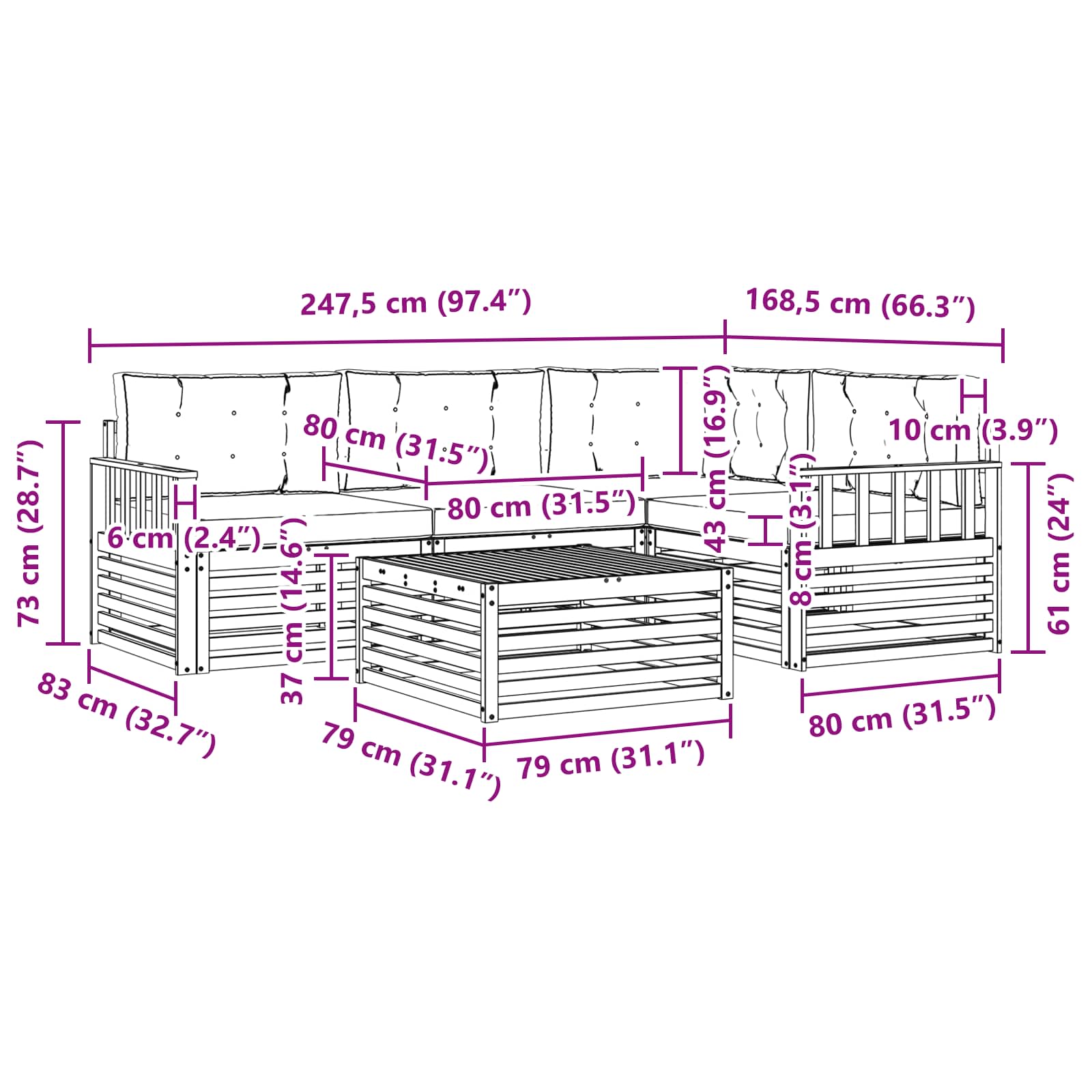 - Gesamtabmessungen: 79 x 79 x 37 cm (L x B x H)