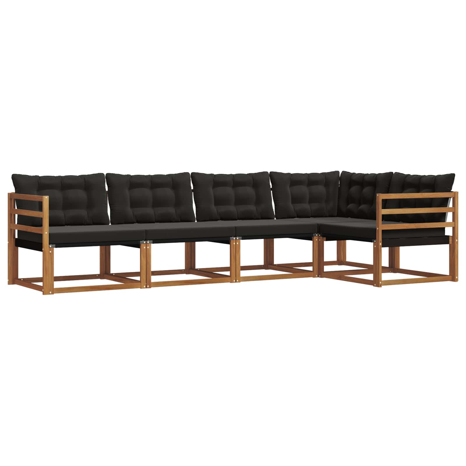 Dieses moderne Sofa-Set bringt Entspannung nach draußen mit seinem schicken Design und dem unvergleichlichen Komfort. Es passt perfekt in Garten und auf die Terrasse und setzt mit seinen klaren Linien und der schönen Holzmaserung Akzente. Egal ob für Partys oder ruhige Abende – die Kombination aus hochwertigen Materialien und Handwerkskunst gibt dir sowohl Langlebigkeit als auch schönen Look. Hochwertige Materialien: Hergestellt aus massivem Akazienholz, strahlt dieses Sofa-Set natürliche Eleganz aus und bietet Robustheit. Der Textilene-Stoff, der über die Rahmen gespannt ist, sorgt für Flexibilität und Anpassungsfähigkeit. Diese Materialien halten den Outdoor-Anforderungen stand und garantieren Langlebigkeit bei gleichzeitig toller Optik. Modul-Funktionen: Jedes Modul kommt mit einer komfortablen Rückenlehne, die super gemütlich ist. Die massiven Armlehnen zeigen eine schöne Holzmaserung und verleihen zusätzlich strukturelle Stabilität. Außerdem helfen die dicken, bequemen Kissen, die du bei Bedarf ganz einfach abnehmen kannst, für ultimativen Komfort. Funktionalität: Das modulare Design ermöglicht es dir, die Sitzanordnungen ganz nach Belieben zu verändern. Das fadebeständige Material sorgt dafür, dass die Farbe selbst bei viel Sonne lebendig bleibt. Diese funktionalen Details, wie leicht zu reinigende Oberflächen, machen die Pflege kinderleicht. Verwendungszwecke: Ideal für draußen, perfekt für Gartenpartys, auf der Terrasse oder für lockere Treffen. Es passt sich einfach verschiedenen Sitzbedürfnissen an – ob du deine Grill-Gäste unterbringst oder dich einfach nur zurückziehst und ein ruhiges Buch im Sommer liest. Pflegetipps: Halte das Sofa-Set frisch, indem du die Oberflächen mit einem feuchten Tuch abwischst. Bei regelmäßiger Pflege und umgehender Entfernung von Schmutz bleibt das Stück langlebig und sieht immer gut aus – so wird es ein fester Teil deines gemütlichen Außenbereichs.