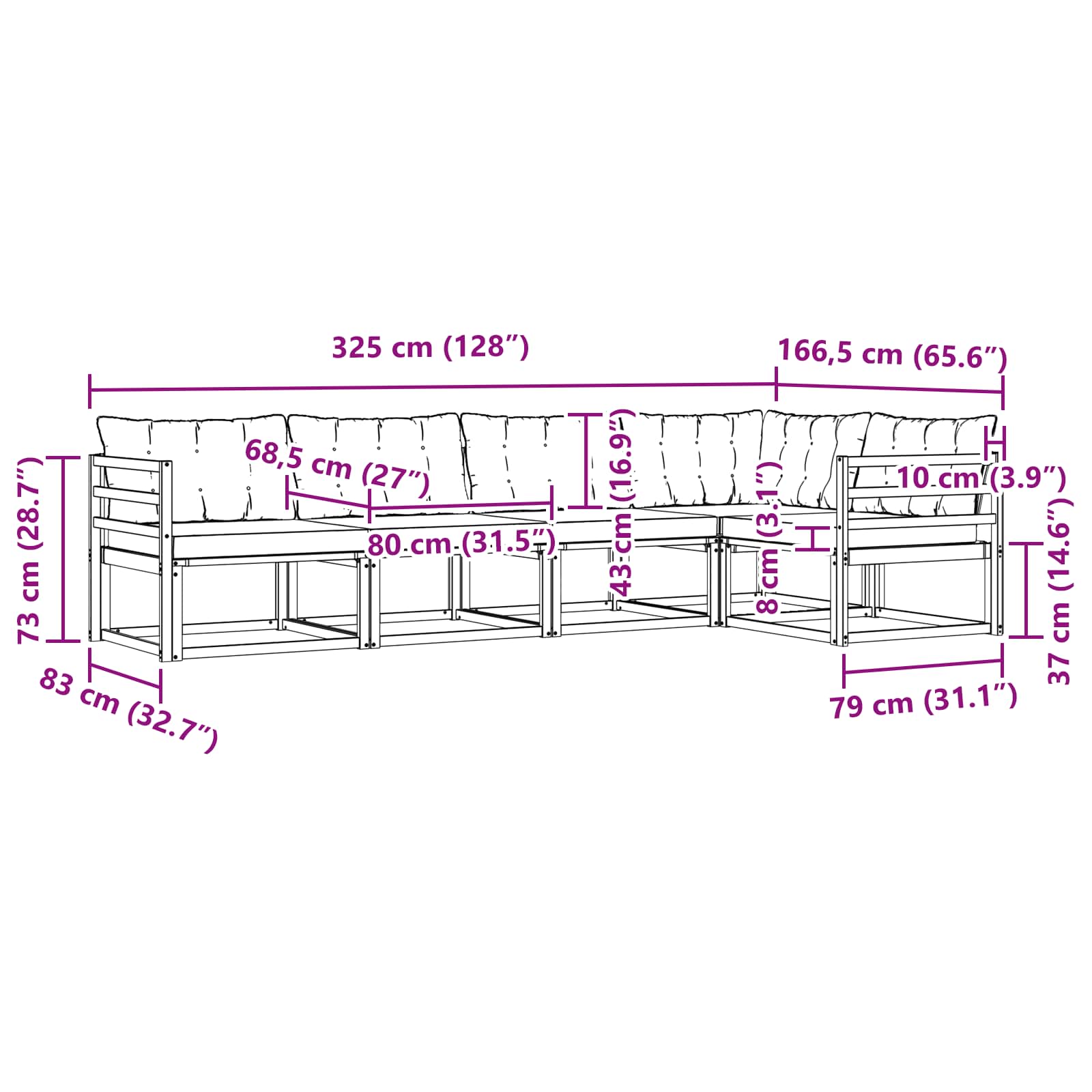 - 6 x Rückenpolster: 80 x 43 x 10 cm (LxBxH)