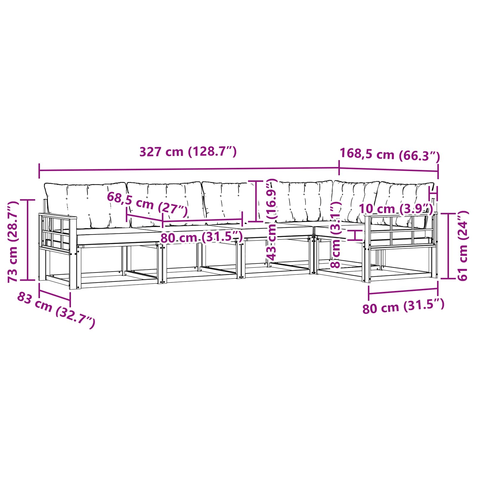- 6 x Rückenkissen: 80 x 43 x 10 cm (LxBxH)